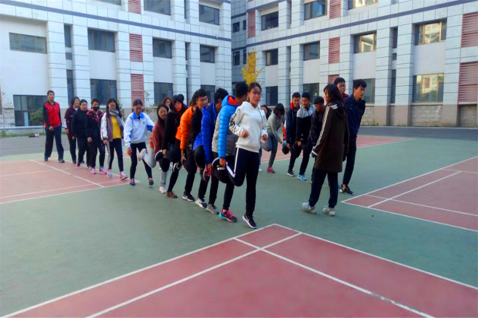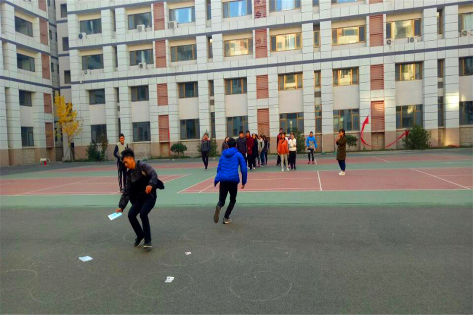 “贪吃蛇大作战”环节中,同学们一只手搭在前一个同学的肩上,另一只手抬起前一个同学的一只脚,原地单腿跳,当一支队伍接上以后一起前进。“这个环节需要组员之间紧密配合才能完成,不仅考验体力和智慧,也考验同学之间的协调性和默契度。只有一支队伍保持一样的速度前进,才能保证‘贪吃蛇’不会从中间断开。”李昭林如是说道。