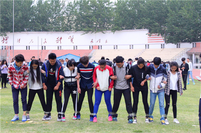 “ 十人十一足”环节中,同学们在班委的组织下以及同学们的相互了解和磨合下,训练渐入佳境。