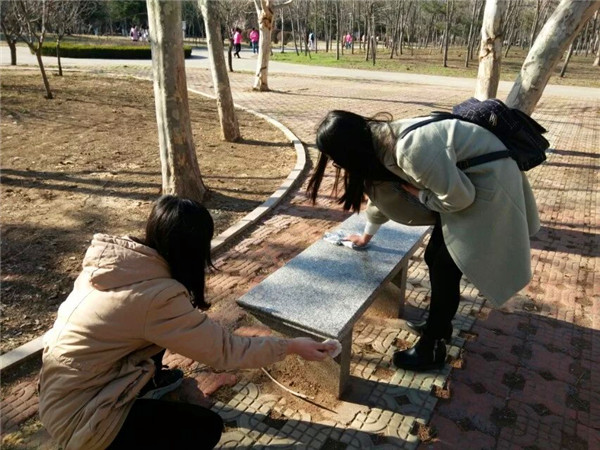 3月18日,药学1402举办清扫长凳活动。全班同学在组织委员任晓聪的组织带领下,对散布在校园各处的长凳进行清洁。分配好任务之后,全班同学各自奔赴需要清洁的地方,认真地将长凳清理干净,为同学们提供干净清洁的休息地。“我很喜欢一个人坐在校园的石凳子看书,可是经常找不到干净的地方,经过这次清理,不仅为行人们提供了一个整洁的休息处,也给我自己提供了一个读书的好地方。”马慧敏说道。