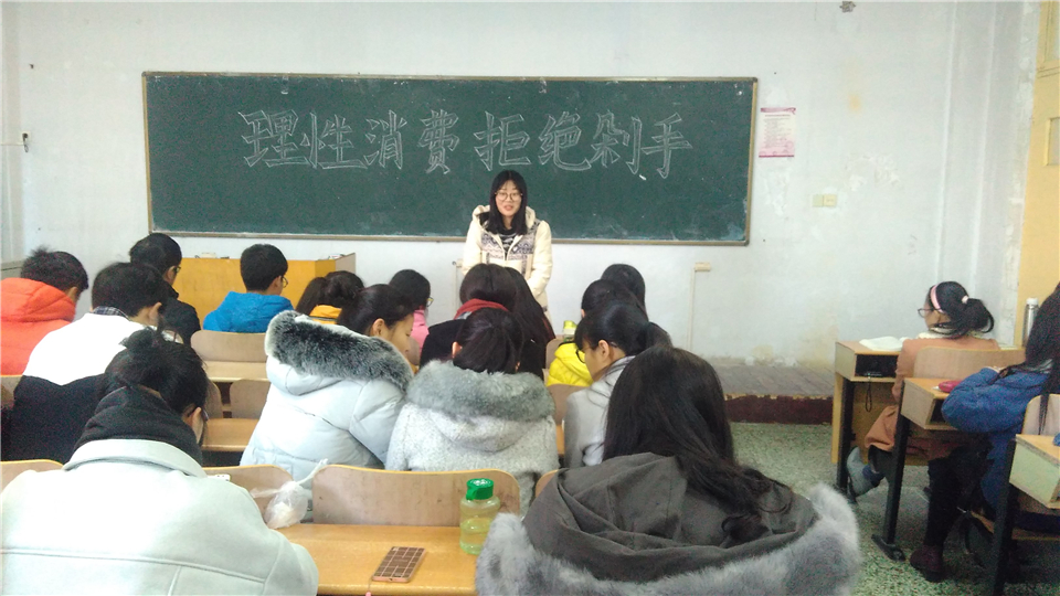 11月11日,药学1501班举办“理性消费,拒绝剁手”主题教育活动,旨在引导同学们养成合理的消费习惯,避免同学们陷入网络贷款陷阱。药学1501班全体学生参与。