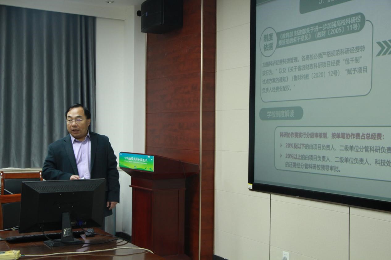 会上,平涛作题为“牢记嘱托,奋勇争先,推动新时代横向课题工作高质量发展”的专题报告。他首先强调了横向课题与科技成果转化的重要性,指出其不仅是学校发挥高校功能,服务社会的重要形式,更是山东省谱写中国式现代化新篇章的重要战略需求。随后,平涛对当前国家关于横向课题及科技成果转化方面的相关政策进行了深入解读,他结合太阳成tyc122cc集团的实际情况,对学校新修订的横向科研项目管理办法及科技成果转化管理办法进行了介绍,为参会教师提供了清晰的政策导向。