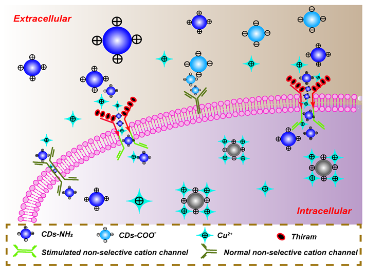 本文利用无毒的、生物相容性好的新型光学纳米材料-荧光碳量子点作为探针,实时监测农药作用下,表面带有正电荷和负电荷的碳量子点及金属离子进入细胞情况,从而实现荧光可视化探测农药对植物病原真菌细胞的作用。通过研究发现,在一定浓度范围内,文中所用的模型农药对真菌细胞上的非选择性的阳离子通道具有刺激作用。利用无毒的、生物相容性好的荧光碳量子点作为探针可视化研究农药对植物病原真菌细胞的作用,对认识农药抑菌机理具有重要的意义。