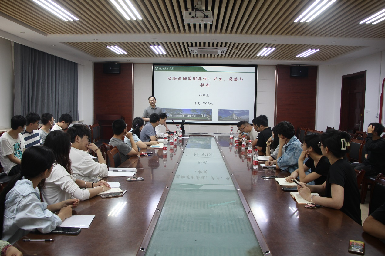 杜向党教授报告以《动物源细菌耐药性:产生,传播及控制》为题,分别从研究背景、细菌耐药性的产生、传播以及细菌快速检查与噬菌体/裂解酶控制等方面展开介绍。