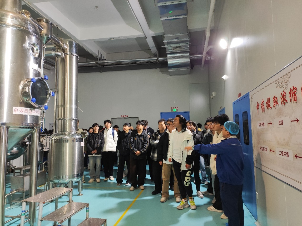 在集团工作人员的引导下,同学们参观了褐藻胶智能工厂,首次完整观摩了海藻酸钠从原料预处理、提取纯化到自动化包装的工业化全流程。高度集成的控制系统、洁净规范的车间环境、绿色低碳的生产工艺,让同学们直观感受到现代化工生产的智能化与精细化,也对本专业在真实产业场景中的价值有了具象理解。