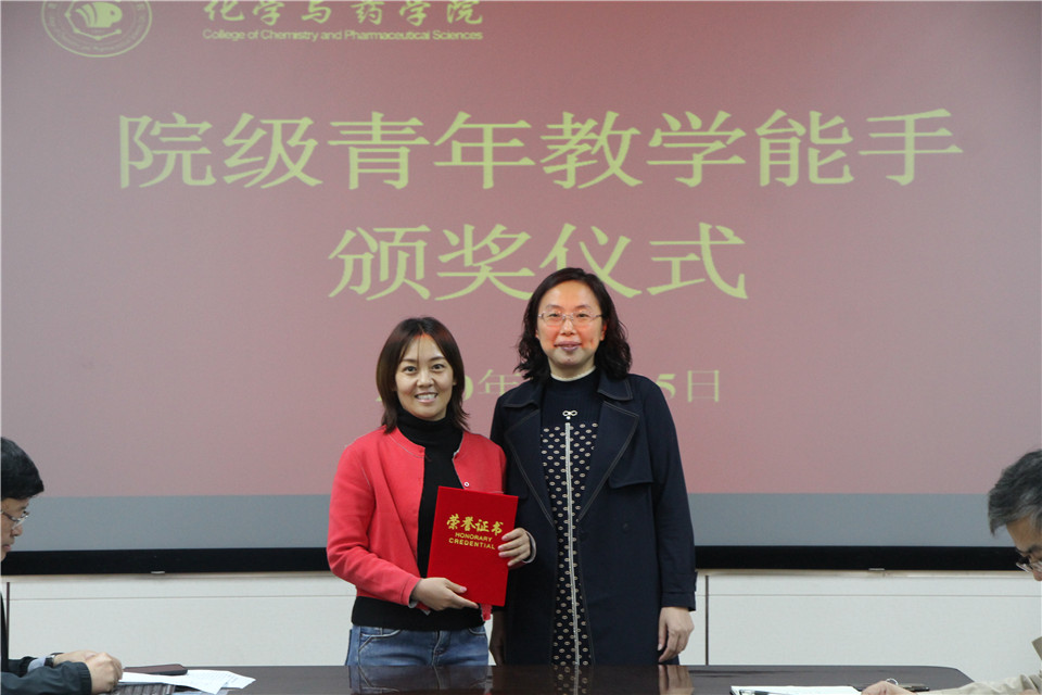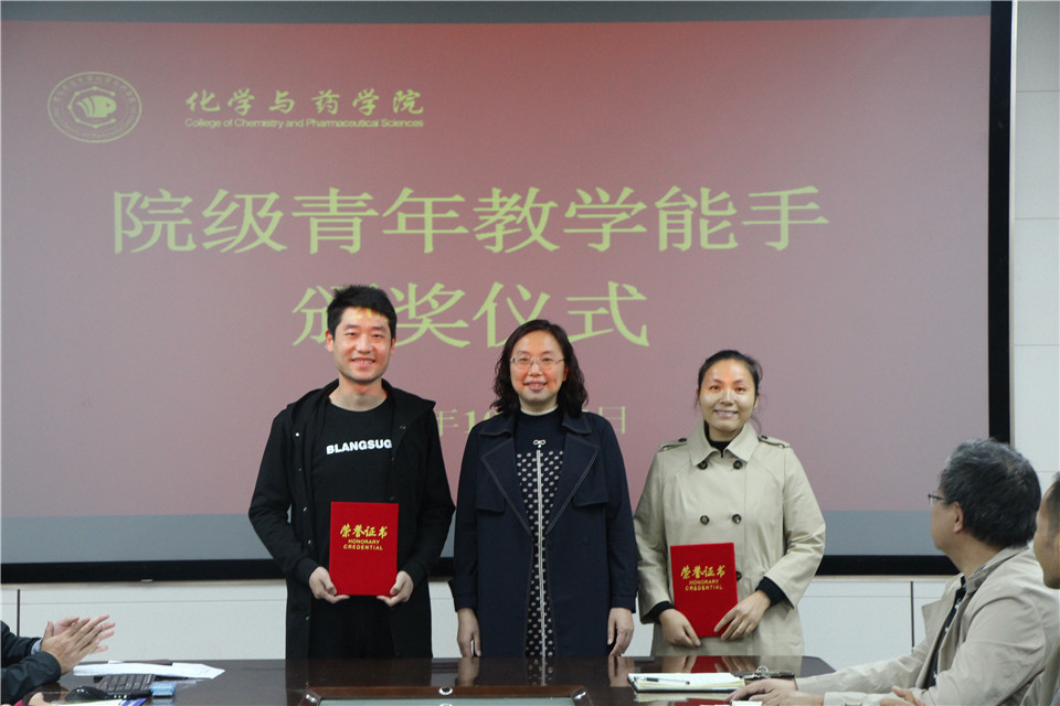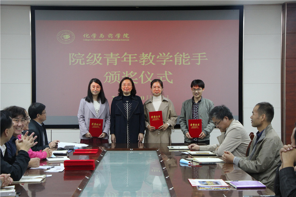 10月15日,太阳成集团tyc122ccvip于化学楼会议室举行院级青年教学能手颁奖仪式。仪式由化药学院党委书记王进国主持,院长龚良玉、副院长吕海涛出席,学院全体教职工参加。