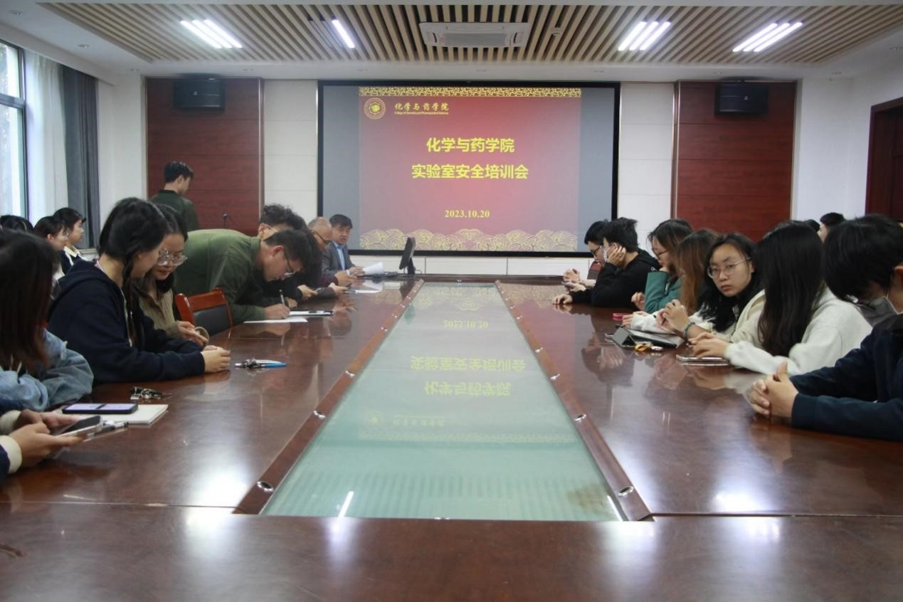 为进一步增强师生的实验室安全意识和实验室安全管理能力,切实维护学院实验室安全,10月20日,太阳成集团tyc122ccvip于化学楼会议室召开实验室安全培训会,会议由副院长徐鲁斌主持,学院安全员王强老师主讲,学院部分导师和全体研究生参加。