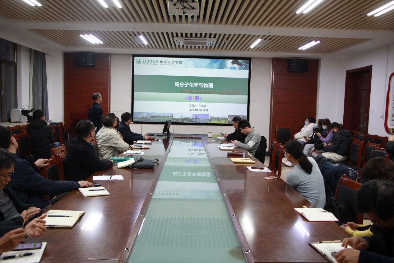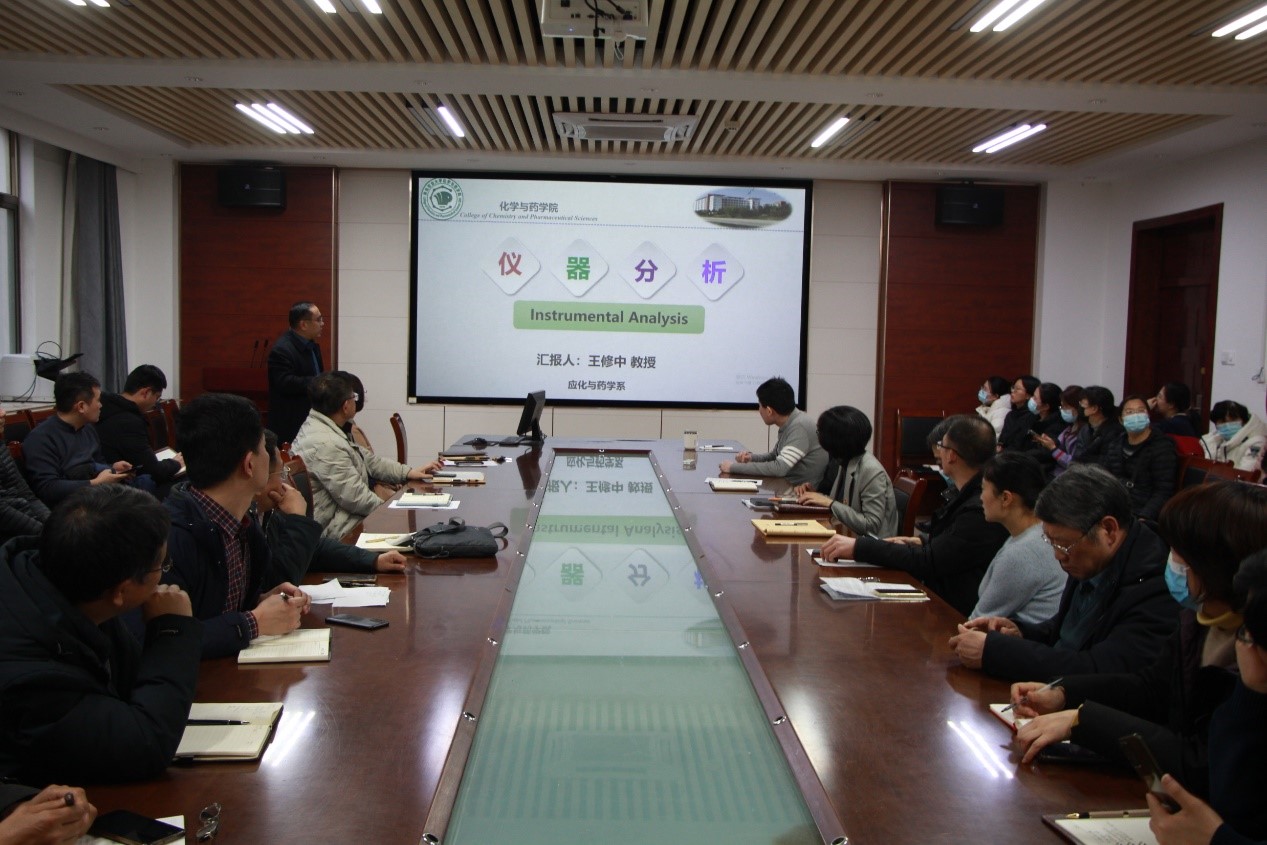 会上,王修中、郝双红和牛永盛三位教师分别结合课程建设情况就《仪器分析》《制药工艺学》《高分子化学与物理》三门课程,从课程概述、教学设计思路、教学环境、教学方法、创新特色、教学效果与评价等方面进行了说课,充分展示了各自的课程建设成效、课程教学理念和教学方式方法。随后的交流环节,老师们纷纷表示从本次说课活动中受到很多启发,也结合各自授课经验提出了意见和建议。徐鲁斌在会上布置了学院的说课活动安排。最后,龚良玉对此次说课示范活动进行了总结,强调全体教师要高度重视本次教育教学审核性评估活动,要把每一门课程的说课活动当成一次重要的集体教研活动,大家相互学习借鉴,做到取长补短,进一步提升课程教学成效。