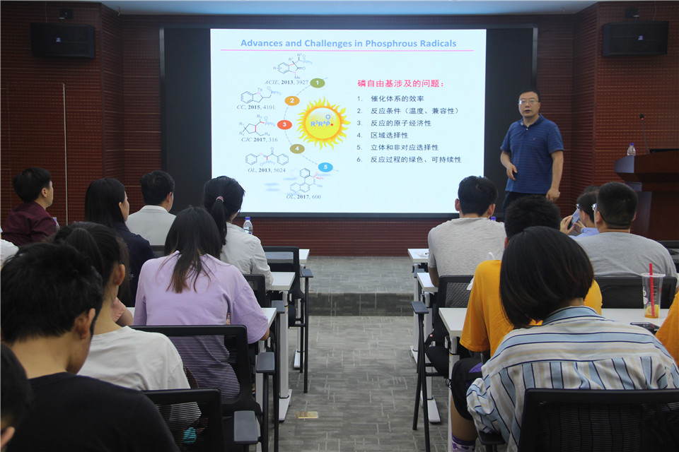 报告会上,孙伟对手性四氨配体的来源进行说明,详细地介绍了基于手性四氨配体的Mn、Fe配合物实现烯烃的高效氧化反应的途径。孙伟还对非血红素锰配合物不对称反应机制与构效关系进行解说。杨尚东以自由基在有机磷化学合成中的应用为主题进行讲解,阐释了现阶段磷自由基的应用途径,并对其相关研究成果展开介绍。张兴贤从多个角度阐述天然产物莪术醇不对称全合成研究成果,并对其研究价值进行介绍,他说道:“本研究为此类天然产物的全合成提供了一种新策略,为基于莪术醇结构改造寻找抗肿瘤先导化合物奠定了研究基础。”