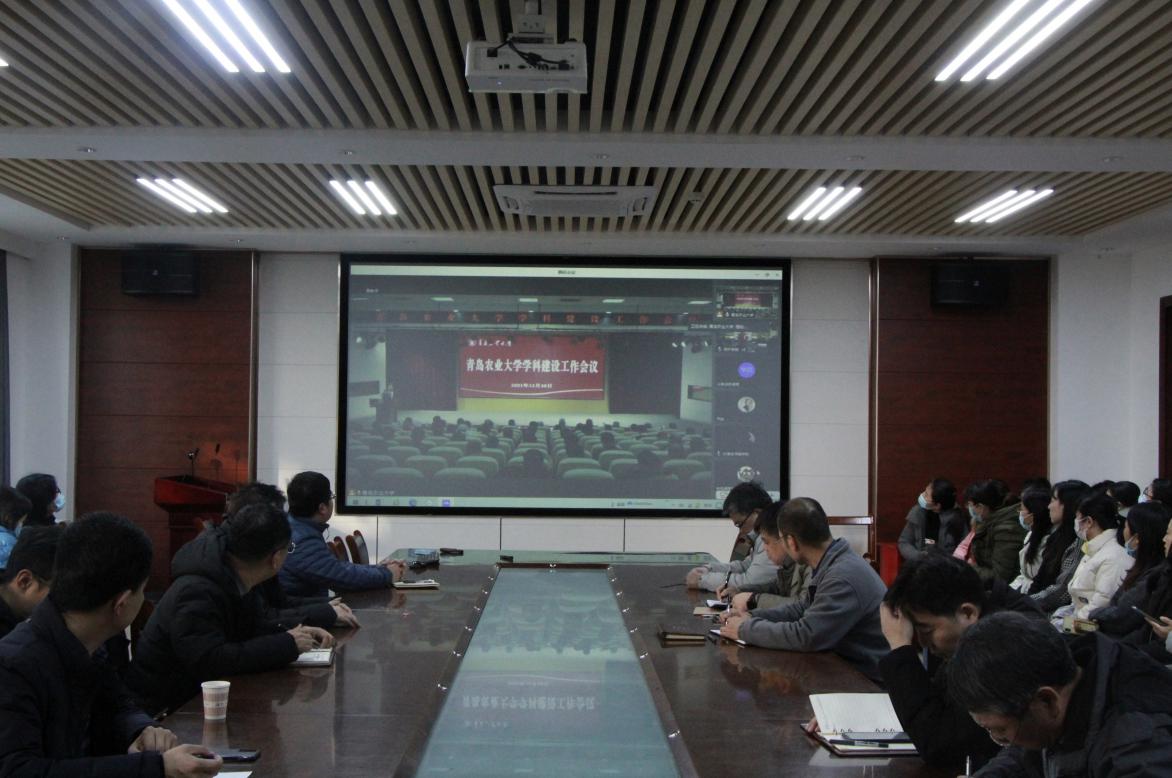 12月30日,太阳成集团tyc122ccvip于化学楼会议室组织观看学校学科建设工作会议直播。学院党委副书记史雪辉,党委专职组织员吕海涛,副院长徐鲁斌、郝双红出席,全体教职工参加。