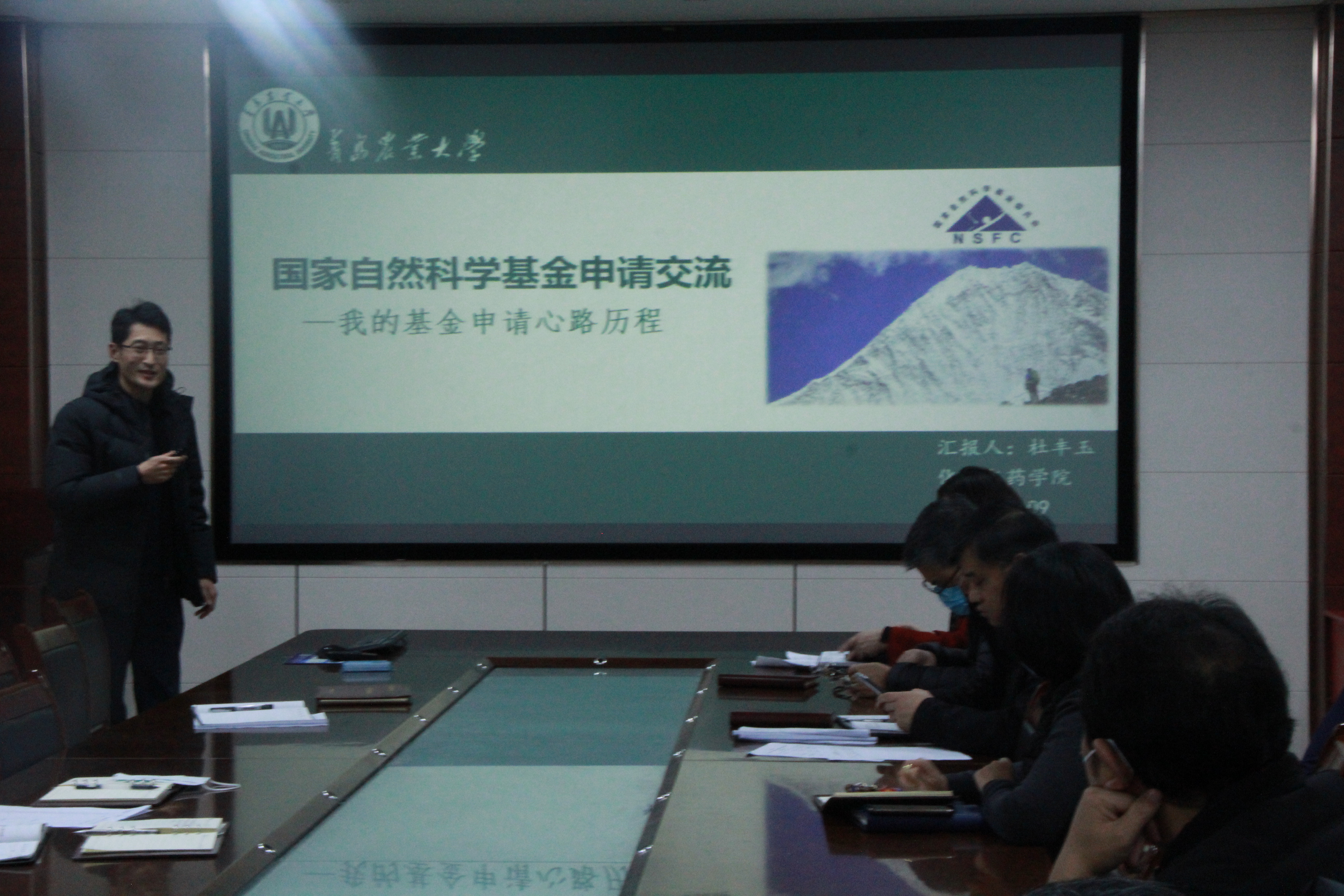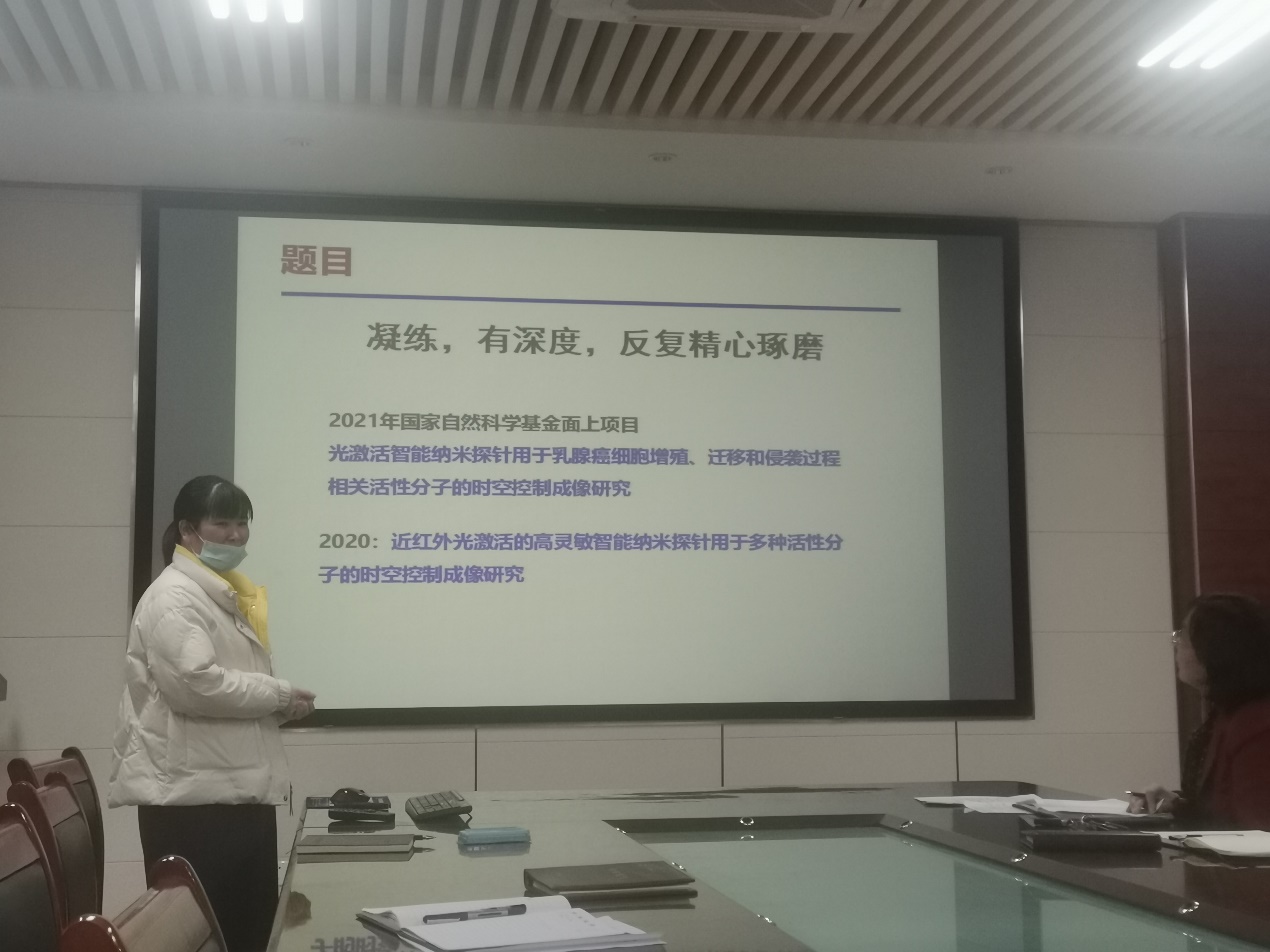 会上,龚良玉首先总结了学院2021年度国家自然科学基金申请及获批情况,并带领全体教师学习了2022年度国家自然科学基金申报相关政策及时间节点安排等。随后,学院2021年度国家自然科学基金面上项目获批教师杜丰玉及杨立敏进行了经验交流。杜丰玉结合个人申请国家自然科学基金项目的经历,分享了其基金准备及申请书撰写过程中的经验教训。他表示,基金申请必须目标集中、层层递进、持续突破;选题应兴趣驱动、潜心研究、不频繁切换方向;申请书撰写更应反复推敲、仔细提炼、有所取舍。杨立敏从题目、摘要、立项依据、研究内容、关键科学问题、研究基础、个人体会等方面详细介绍了申请书撰写的经验。她表示,基金申请既要结合个人既往工作基础,又要瞄准前沿、立足实际;同时申请书撰写也要从评审者角度考虑问题,将申请书的亮点突出展现在评审者面前;最后要对项目书进行反复检查、仔细修改,做到精益求精。