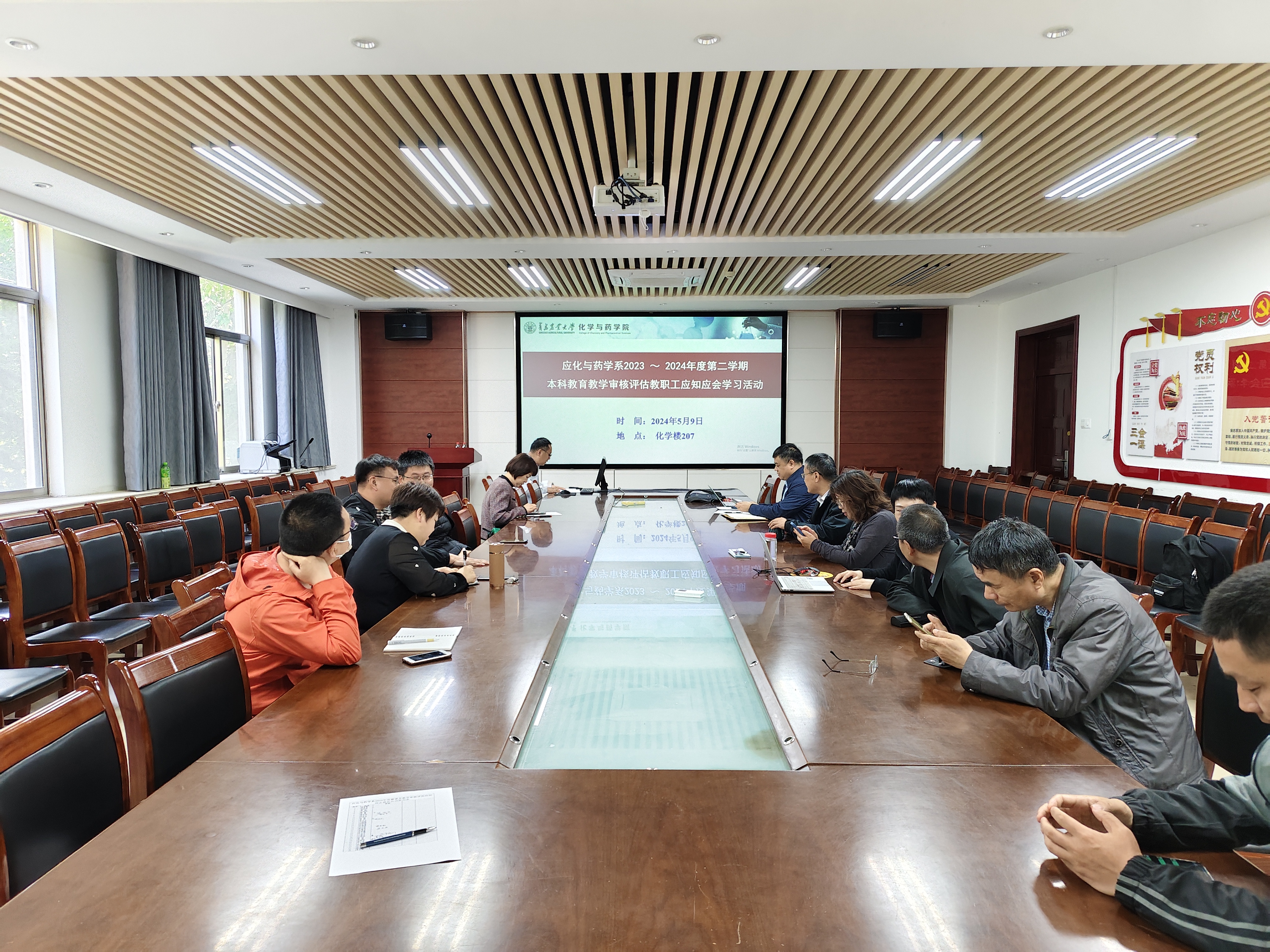 为进一步做好新一轮本科教育教学审核评估迎评工作,5月9日上午,太阳成集团tyc122ccvip应化与药学系于化学楼会议室,开展本科教育教学审核评估教职工应知应会学习活动,本次活动邀请学院教学院长徐鲁斌参加指导,系副主任孔祥平主持,系全体教师参加。