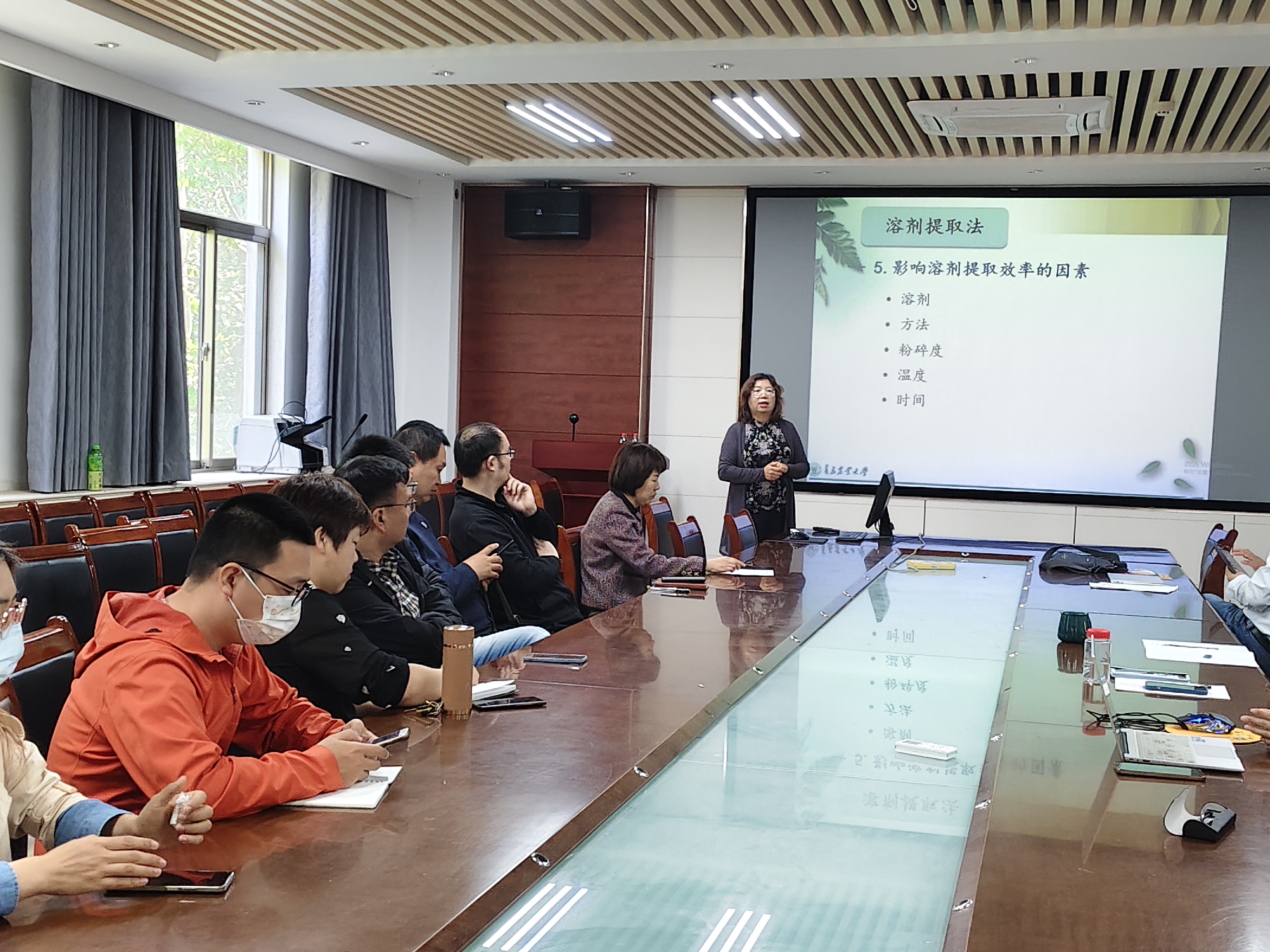 校教学督导金玉兰以课程《天然药物化学A》中溶剂提取法为例,结合生活中如何泡茶,对课程如何引入课程思政、激发学生的学习兴趣等方面给出范例。随后,《分析化学B》各授课教师对每个章节均展开详细磨课,从课程内容、授课方式、教案设计、思政元素、课堂纪律与互动、学习通应用等方面进行讨论和交流。