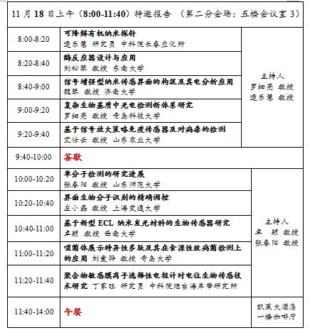 会议内容:本次会议主题是“聚焦生物电分析化学前沿,加快山东新旧动能转换,推动山东分析化学发展”,会议将围绕这一主题开展学术交流,介绍国内外分析化学领域前沿研究进展和科研成果,同时就电分析化学、生化分析、生物成像、生物传感器、生物燃料电池、纳米材料在分析检测等方面的新进展、新动态和新成果进行深入交流与探讨。