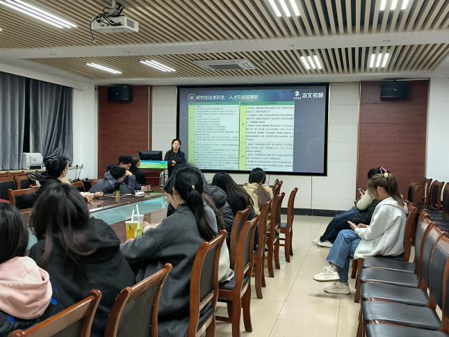 4月14日,学院于化学楼207开展2027届考研规划备考指导讲座,万学教育·海文考研教学与研究中心文静老师主讲,学院2023级学生参加。