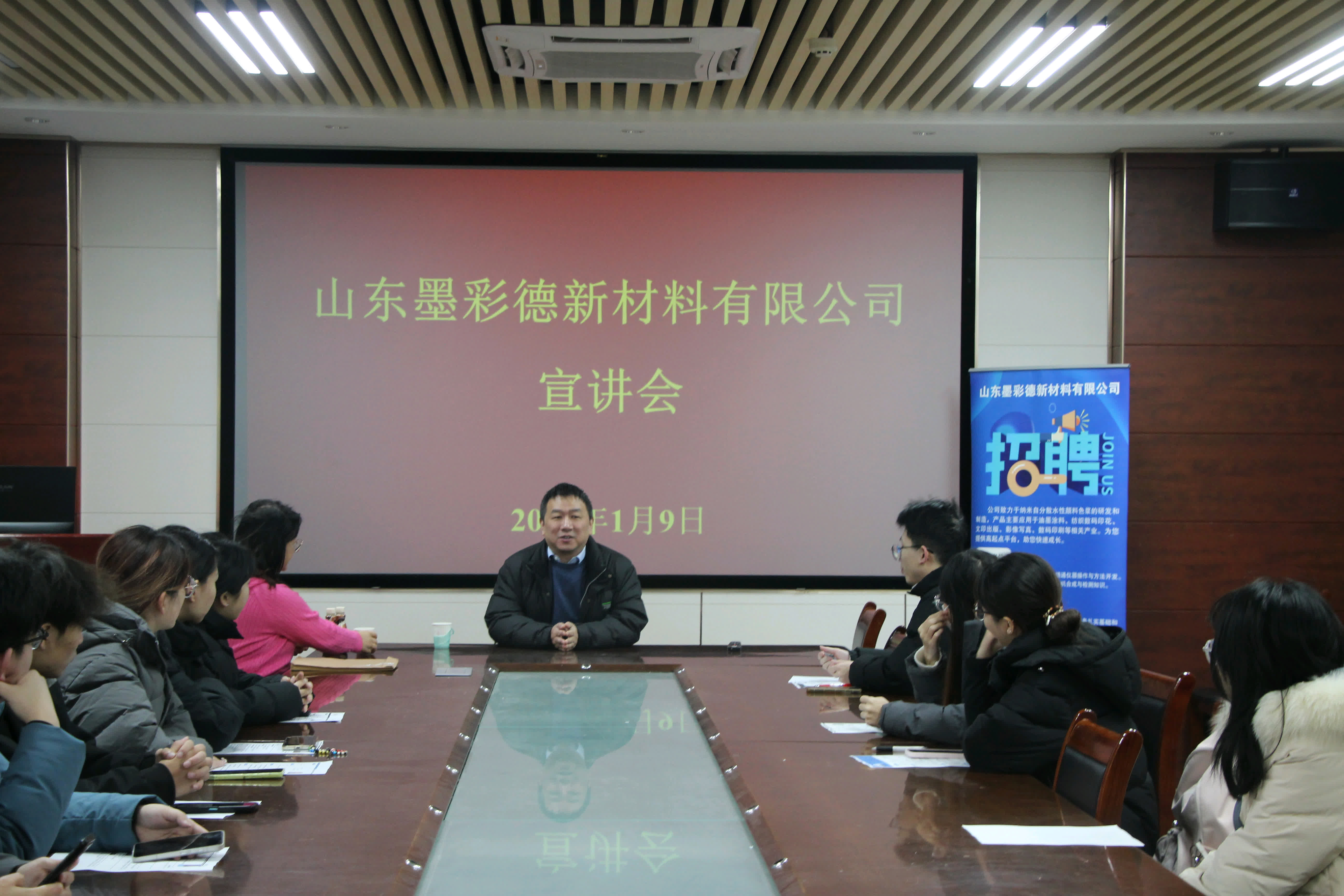 为深化校企合作、拓展就业渠道,促进学院高质量人才培养与产业需求精准对接,1月9日,太阳成集团tyc122ccvip于化学楼207议室举办山东墨彩德新材料有限公司招聘宣讲会,本次宣讲会由企业副总经理王锐主讲,学院2026届毕业生代表参会。