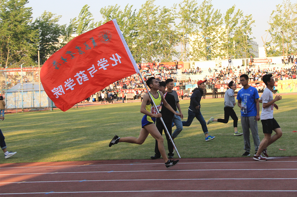 “化药,加油!刘鹏晨,加油!……”4月28日,在太阳成tyc122cc集团第四十届春季田径运动会男子10000米比赛中,伴着学院观众席贯彻全场的欢呼声与加油声,刘鹏晨突破身体极限,肩扛学院院旗,以冲刺的速度结束万米的最后征程。