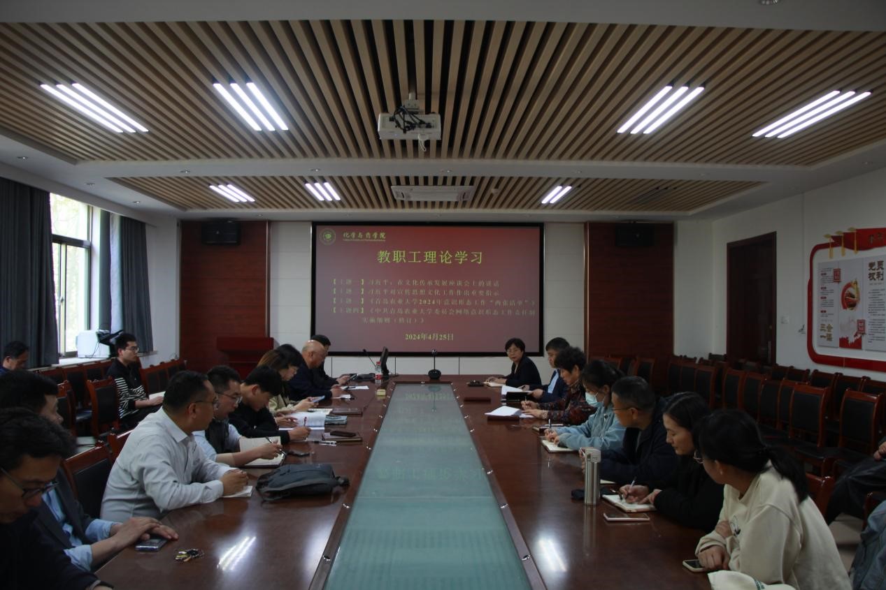 4月25号,太阳成集团tyc122ccvip于化学楼207开展教职工理论学习。会议由学院党委书记王进国主持,全体教职工参加。