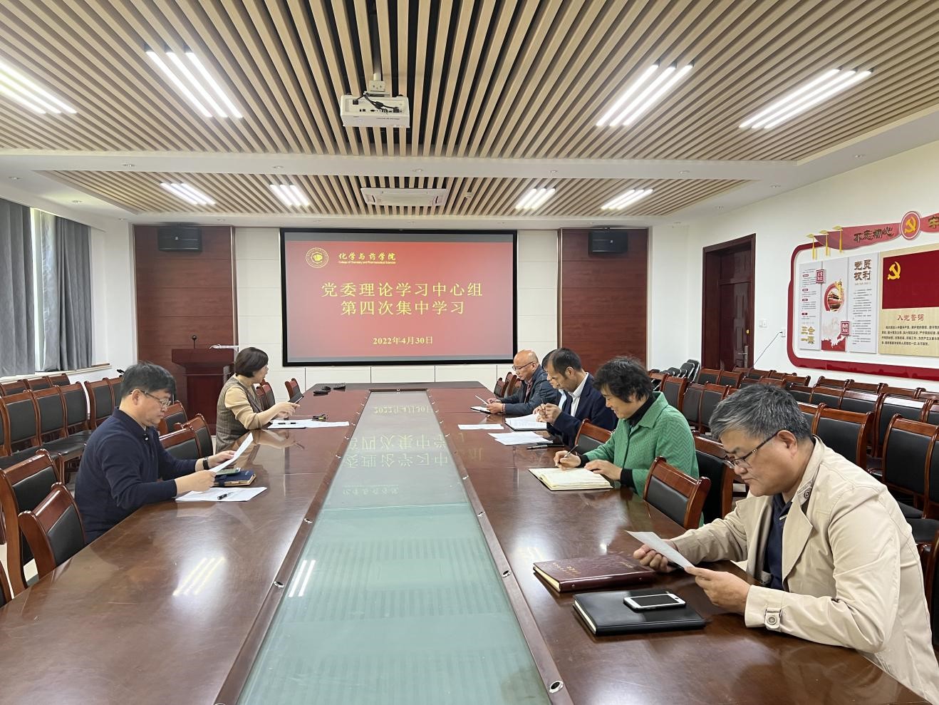 4月30日,太阳成集团tyc122ccvip于化学楼会议室开展2022年度第四次党委理论中心组集中学习。本次会议由学院党委书记王进国主持,党委理论学习中心组成员参加。