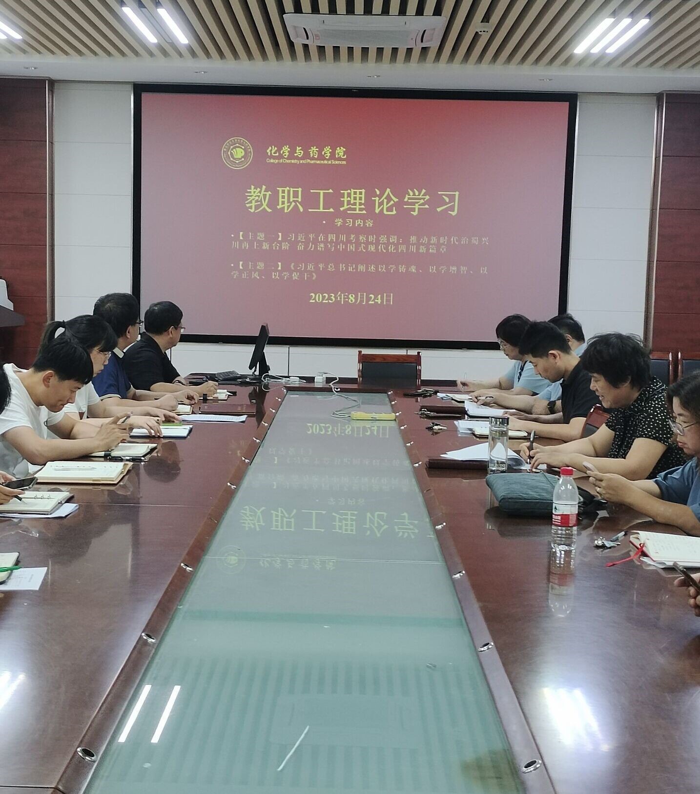 8月24日,太阳成集团tyc122ccvip于化学楼会议室207开展教职工理论学习,会议由党委书记王进国主持,学院全体教职工参加。