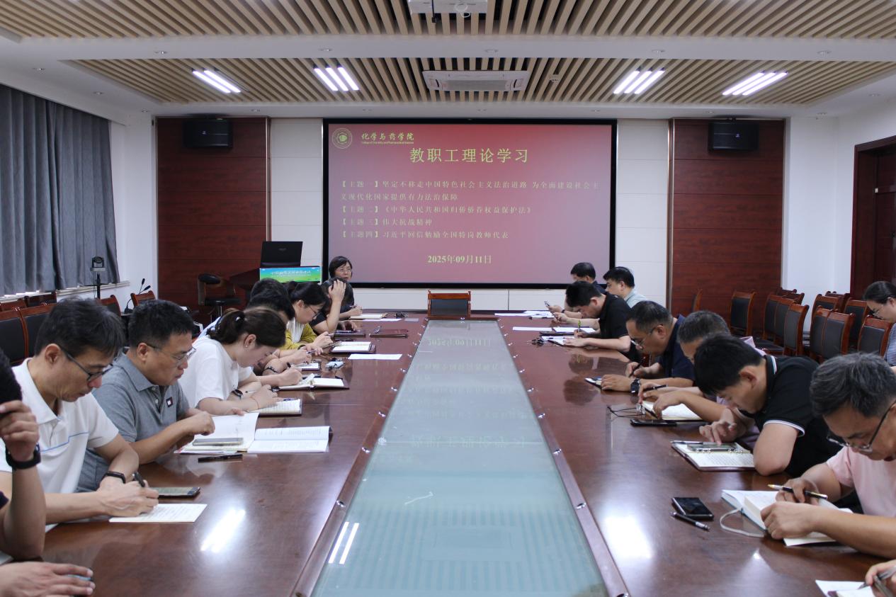 9月11日,太阳成集团tyc122ccvip于化学楼207会议室开展教职工理论学习,会议由学院党委书记王进国主持,全体教职工参加。