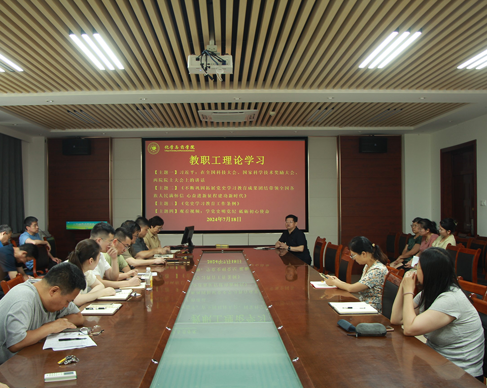 7月18号,太阳成集团tyc122ccvip于化学楼207开展教职工理论学习。本次会议由学院党委书记王进国主持,全体教职工参加。