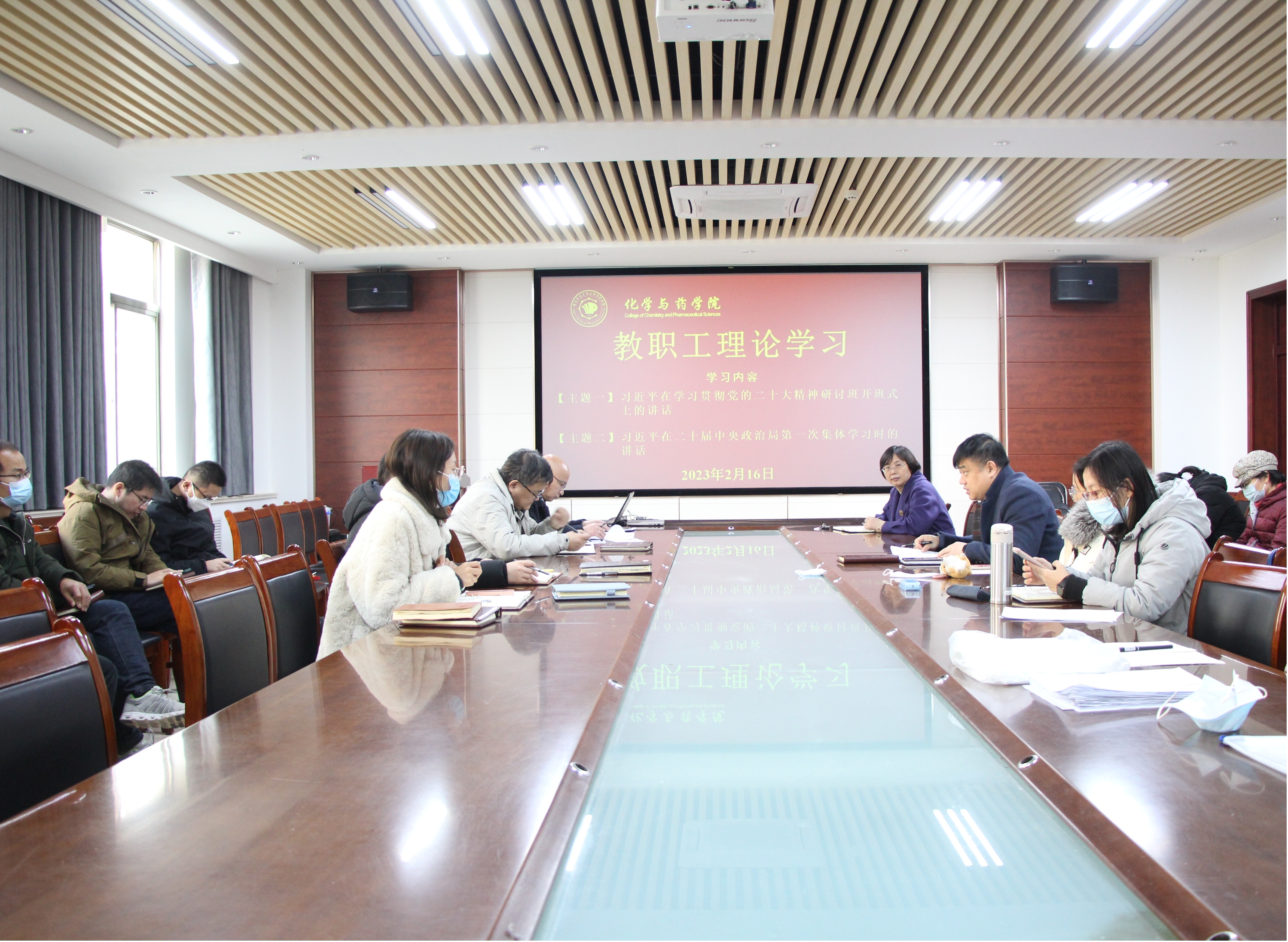 2月16日,太阳成集团tyc122ccvip全体教职工于化学楼会议室开展教职工理论学习,会议由党委副书记张友民主持,全体教职工参加会议。