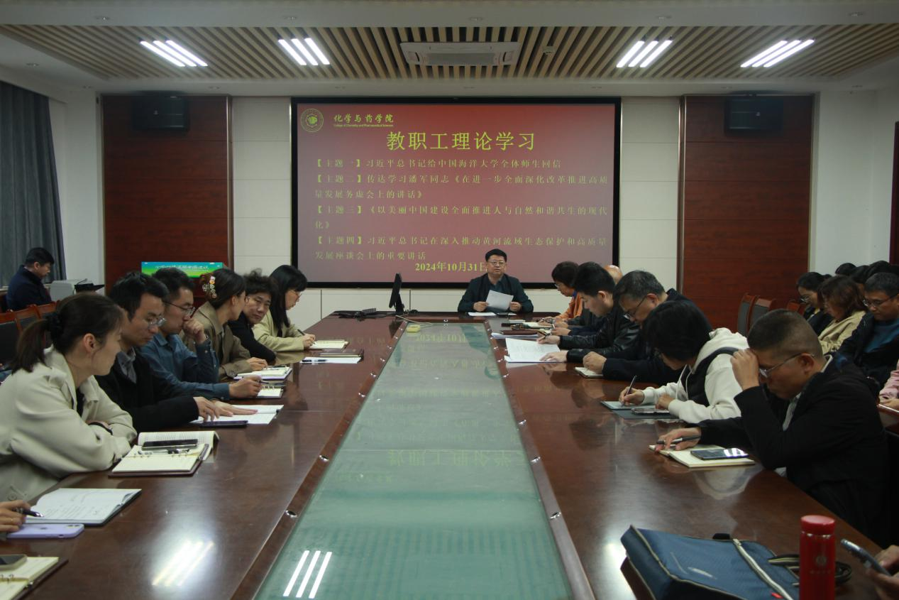 10月31日,太阳成集团tyc122ccvip于化学楼207会议室开展教职工理论学习,学院党委书记王进国主持会议,全体教职工参与学习。