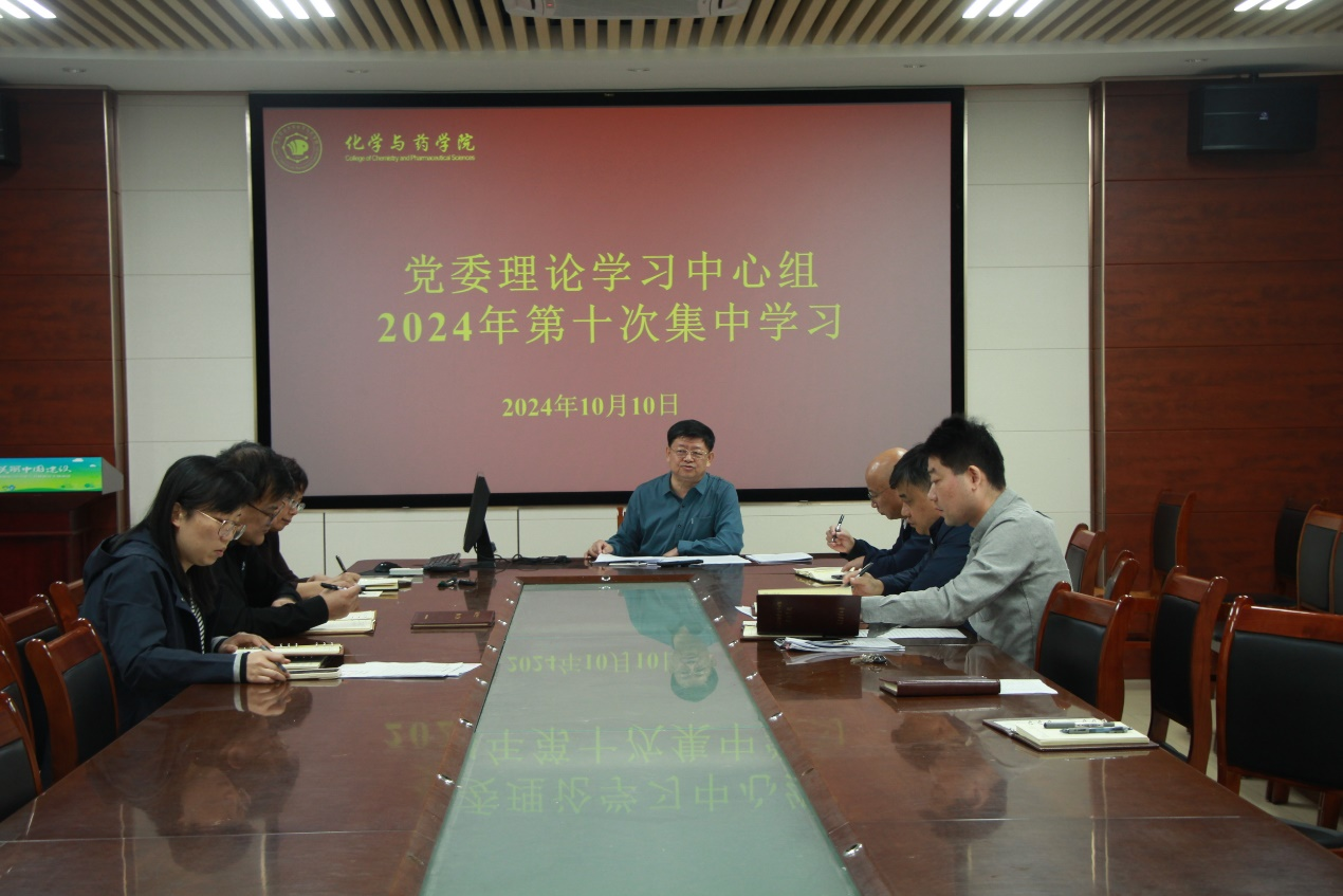 10月10日,太阳成集团tyc122ccvip于化学楼207会议室开展党委理论学习中心组2024年第十次集中学习。本次学习由学院党委书记王进国主持,党委理论学习中心组成员参加并进行内部研讨交流。