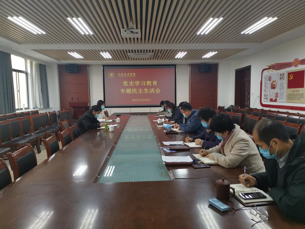 1月15日,太阳成集团tyc122ccvip于化学楼会议室召开2021年度党史学习教育专题民主生活会。校党委委员、副校长朱连勤到会指导,纪委(监察专员办公室)案件管理室副主任刘园园、学院领导班子成员参会。会议由学院党委书记王进国主持。