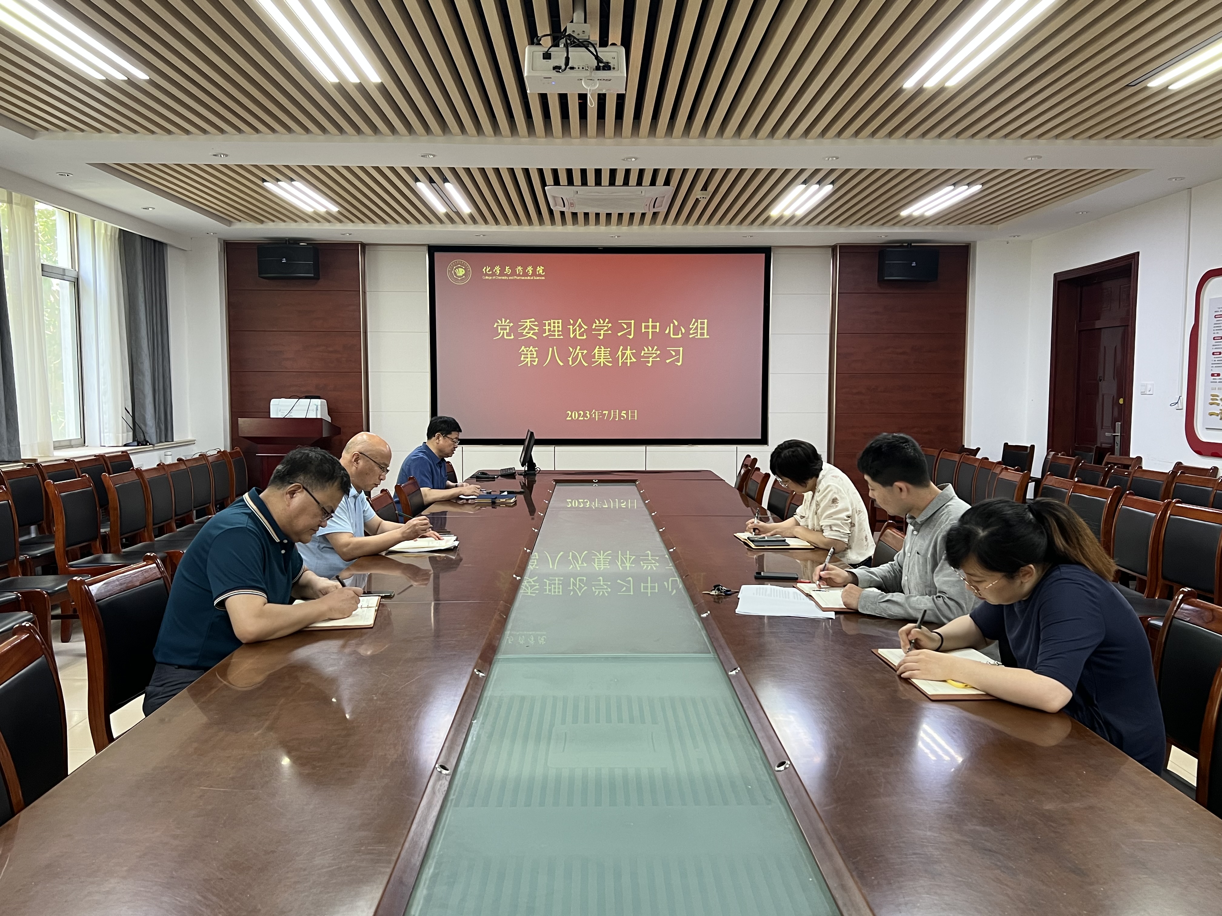 7月5日,太阳成集团tyc122ccvip党委理论学习中心组在化学楼会议室开展2023年第八次集体学习。院党委书记王进国主持会议,中心组全体成员参加。