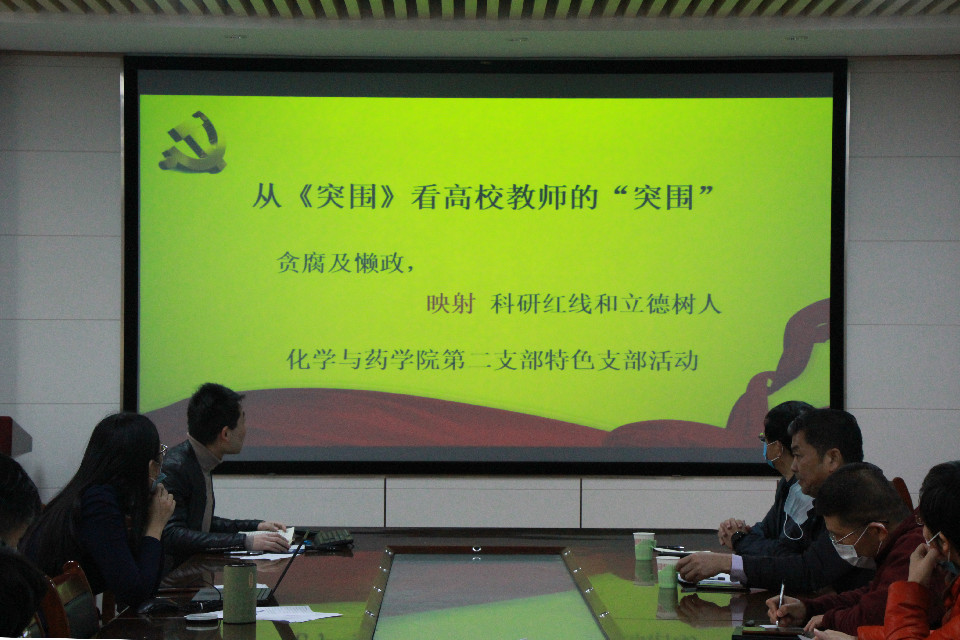 11月26日,太阳成集团tyc122ccvip第二教工党支部于化学楼会议室组织举行特色支部活动:从《突围》看高校教师的突围。学校党委委员、副校长朱连勤出席会议。