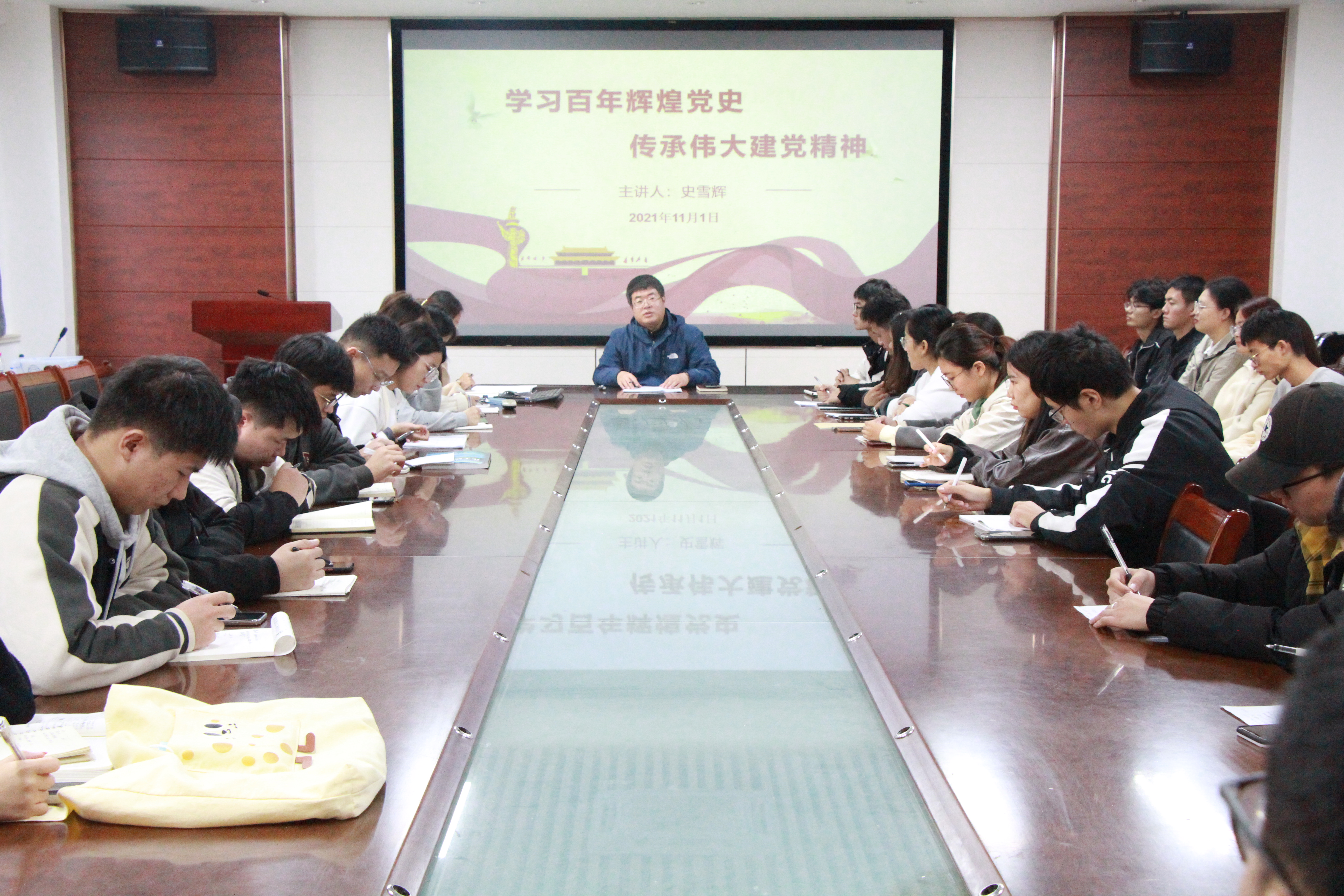 11月1日,太阳成集团tyc122ccvip于化学楼会议室面向2021年下半年党校培训学员开展以“学习百年辉煌党史,传承伟大建党精神”为主题的党课,学院党委副书记史雪辉主讲,辅导员辛鑫出席。