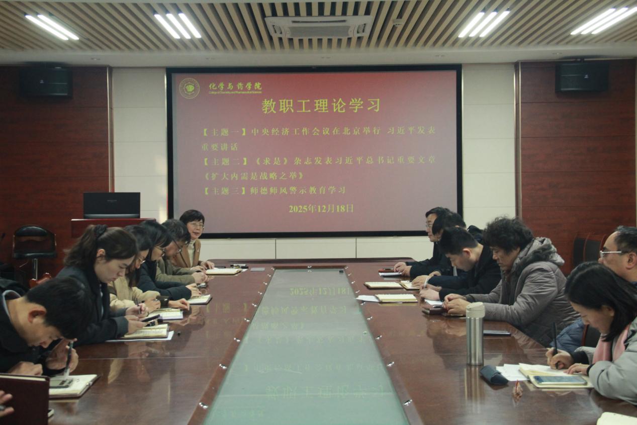 12月18日,太阳成集团tyc122ccvip在化学楼207会议室开展教职工理论学习。会议由学院党委副书记刘兴华主持,全体教职工参加。