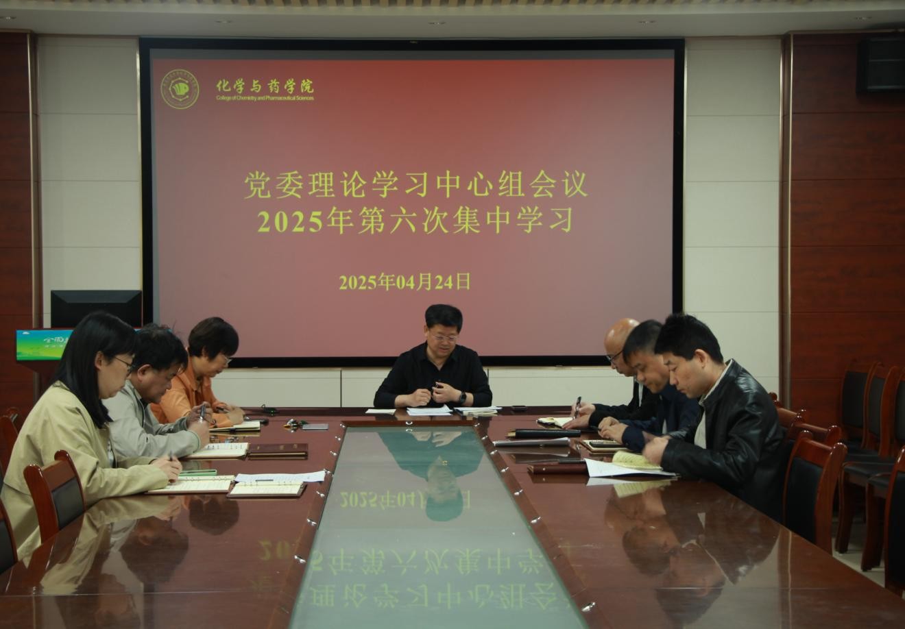 4月24日,学院于化学楼207会议室开展党委理论学习中心组2025年第六次集中学习。会议由学院党委书记王进国主持,党委理论学习中心组全员参加。