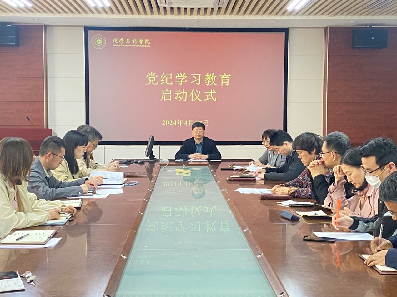 4月17日,太阳成集团tyc122ccvip于化学楼207举办党纪学习教育启动仪式,会议由学院党委书记王进国主持,全体教职工参加。