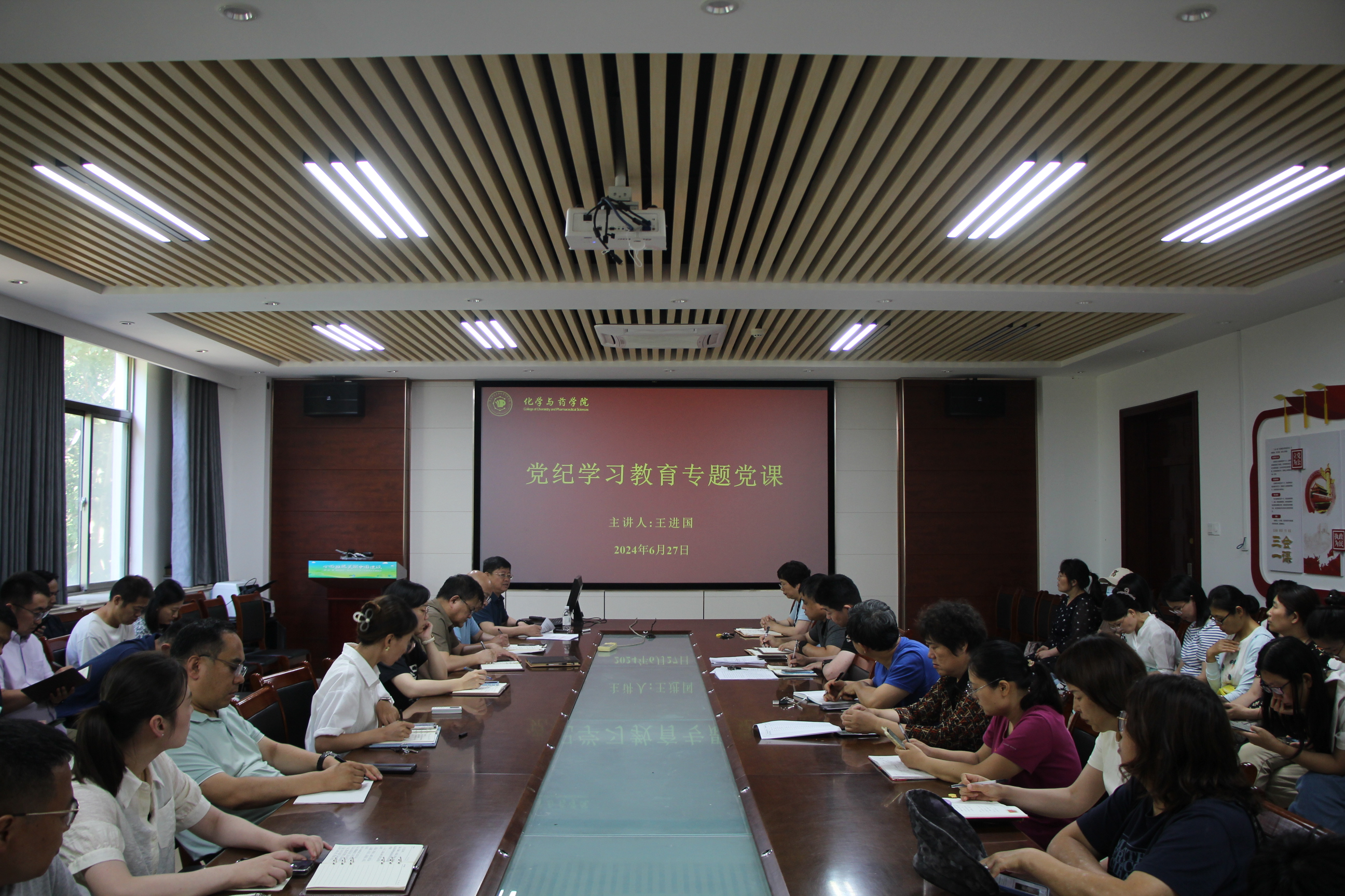 6月27日,太阳成集团tyc122ccvip于化学楼207开展党纪学习教育专题党课,会议由学院党委书记王进国主持,全体教职工参加。