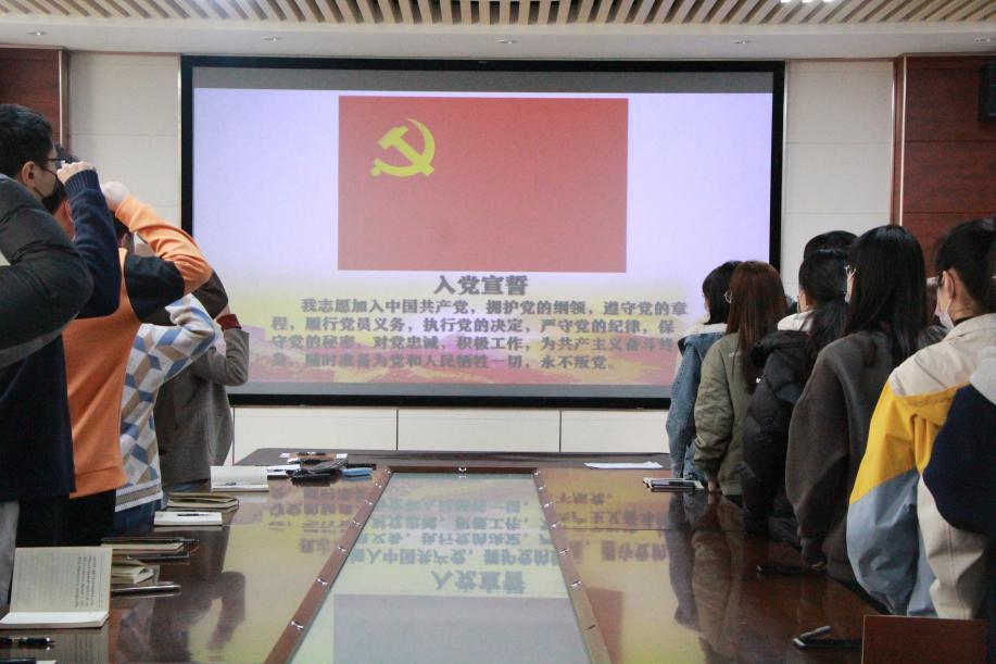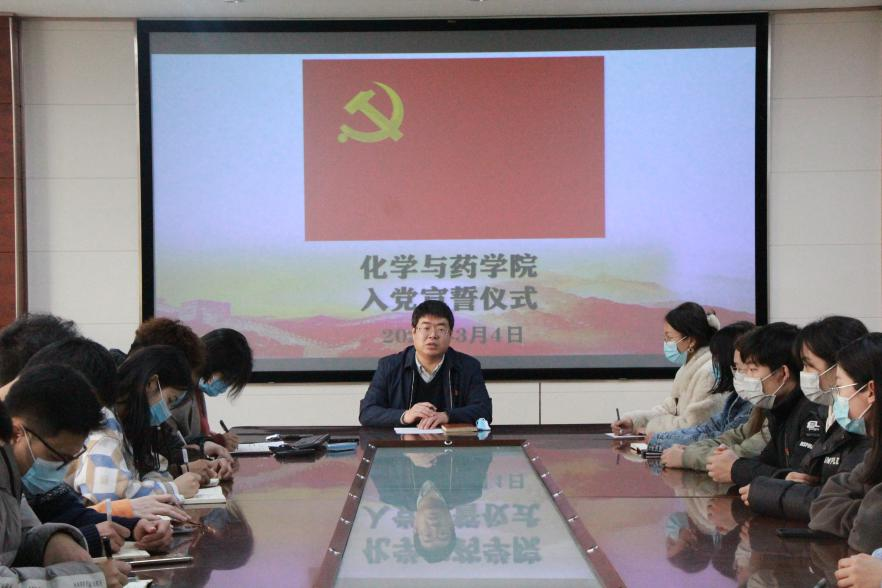 3月4日,太阳成集团tyc122ccvip于化学楼会议室举行新发展党员入党宣誓仪式。学院党委副书记史雪辉、学生党支部书记黄海红和学院新发展党员参加,仪式由辅导员辛鑫主持。