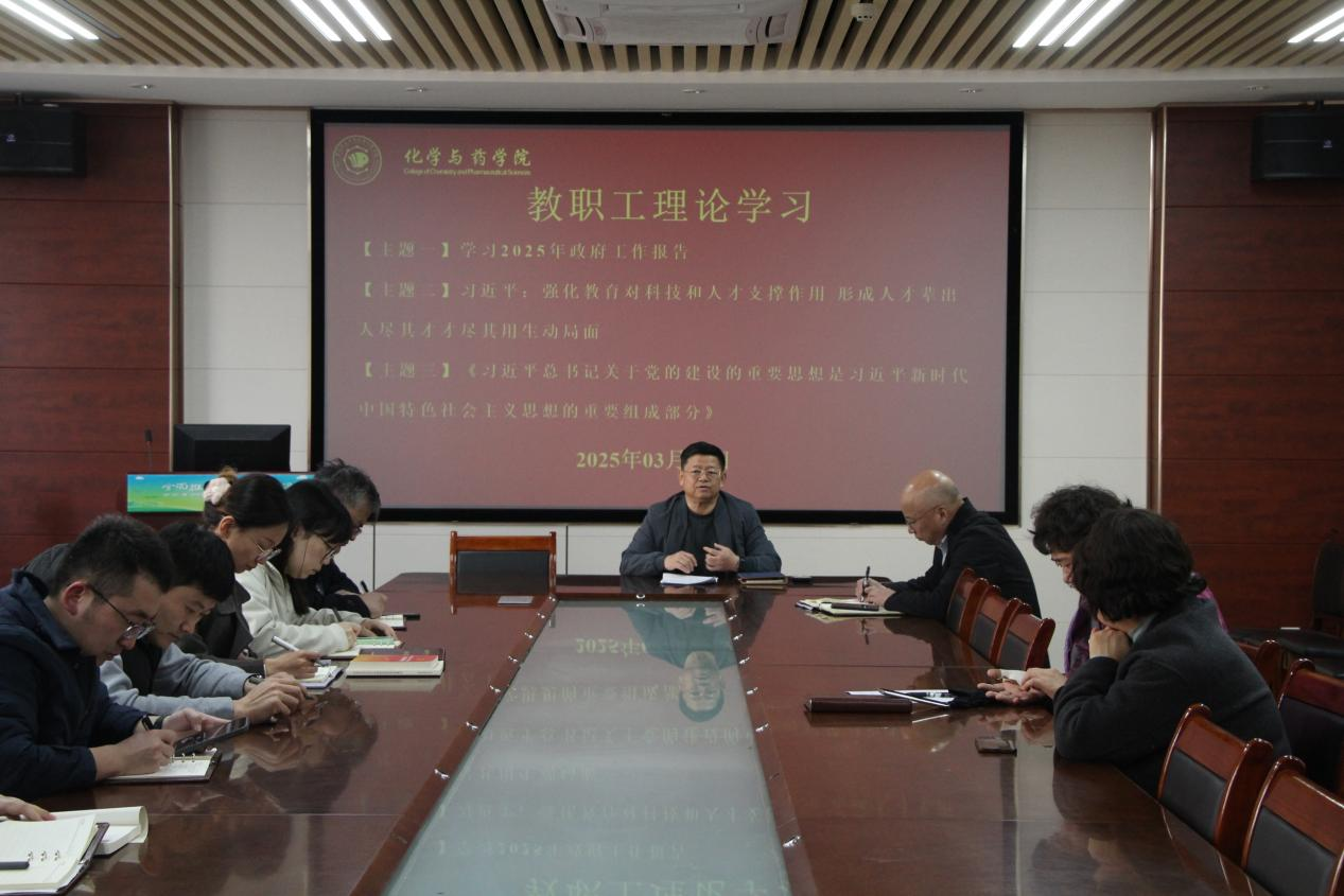 3月13日,太阳成集团tyc122ccvip于化学楼207会议室开展教职工理论学习,会议由学院党委书记王进国主持,全体教职工参加。
