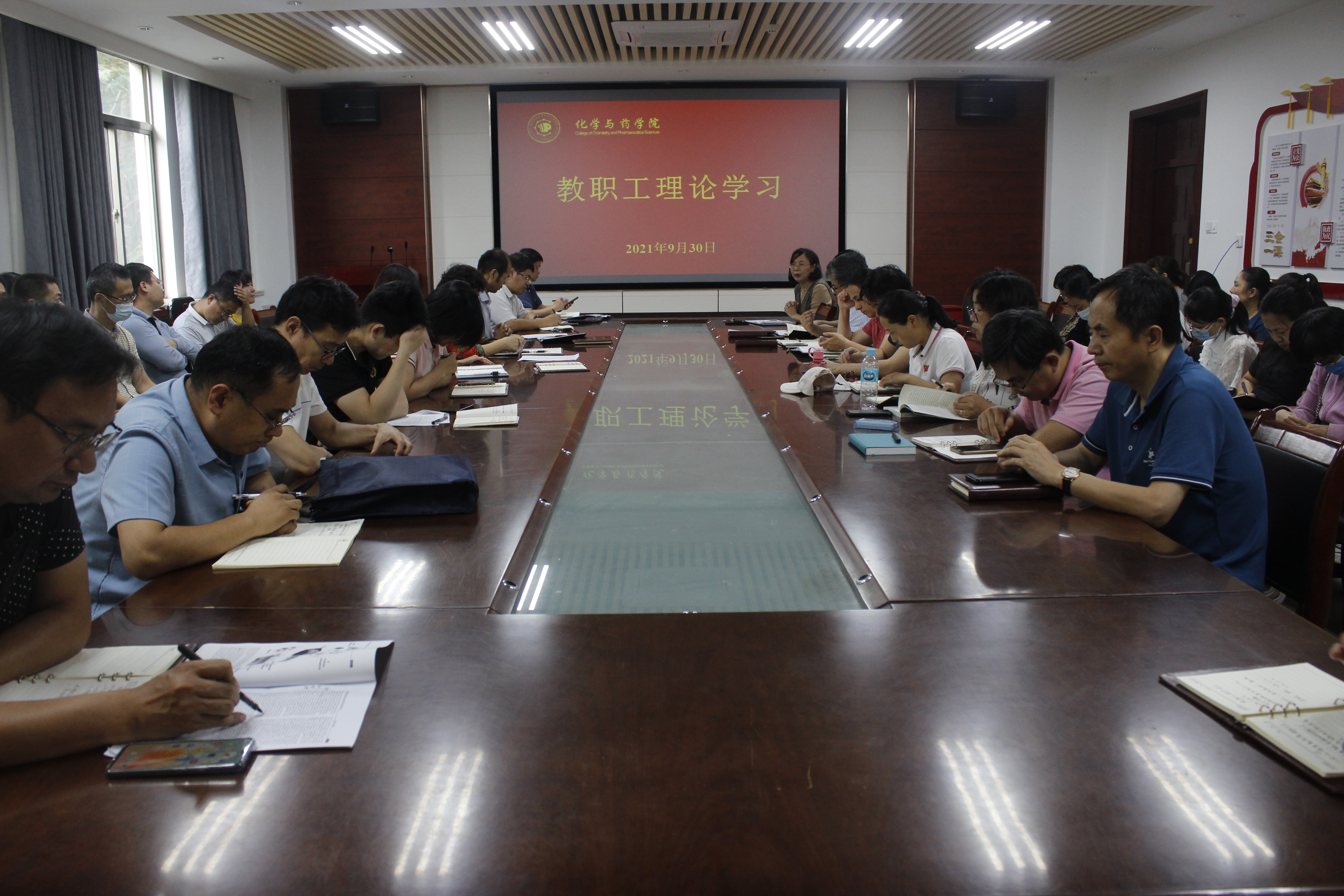 9月30日,太阳成集团tyc122ccvip于化学楼会议室开展教职工理论学习。会议由学院党委书记王进国主持,院长龚良玉,党委副书记史雪辉、党委专职组织员吕海涛,副院长徐鲁斌、郝双红出席,太阳成集团tyc122ccvip全体教职工参加。