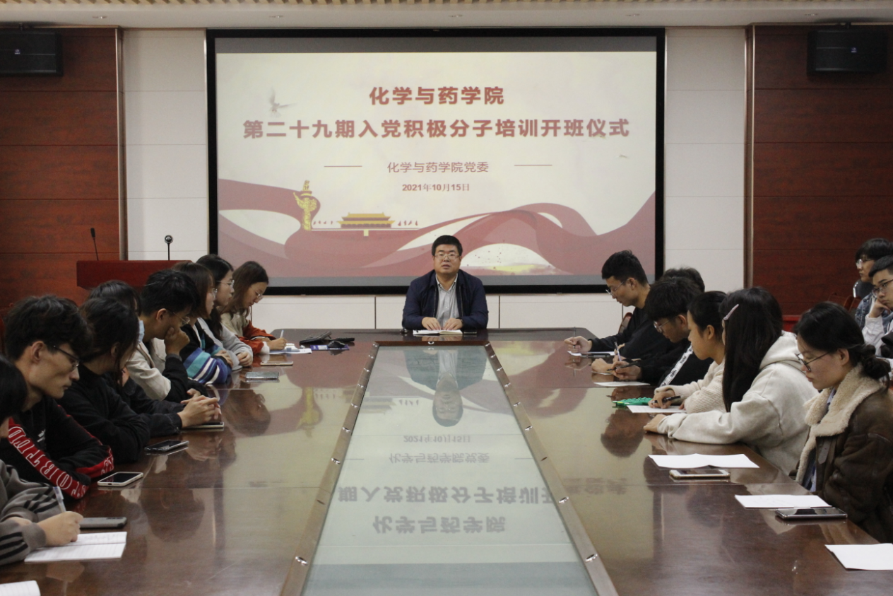 10月15日,太阳成集团tyc122ccvip于化学楼会议室举行第二十九期入党积极分子培训开班仪式。学院党委副书记史雪辉、辅导员辛鑫出席会议,二十九入党积极分子参加。