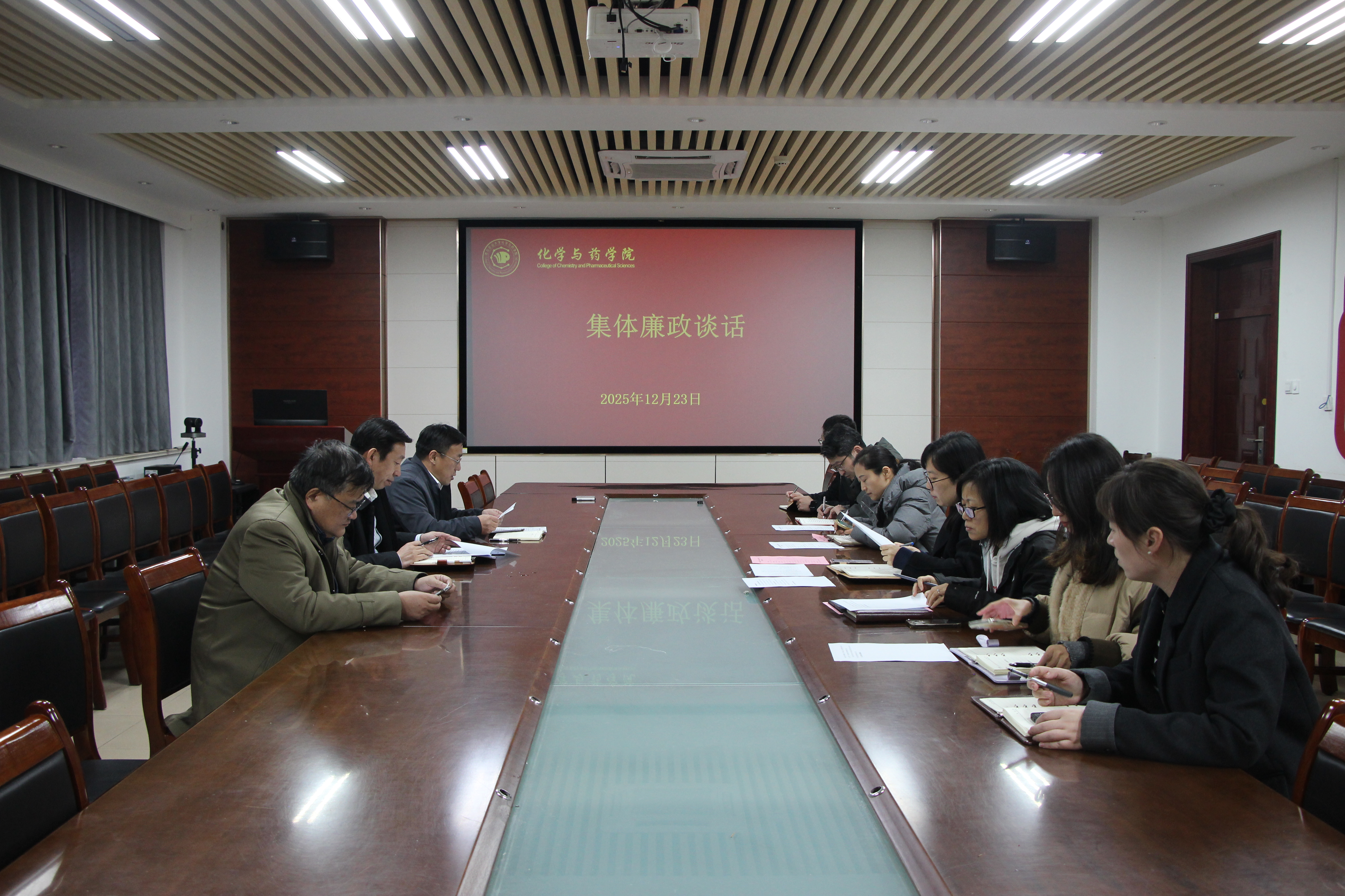 12月23日,太阳成集团tyc122ccvip在化学楼207会议室组织开展集体廉政谈话。学院党委书记由源清,党委副书记刘兴华,副处级干部吕海涛出席会议,各党支部书记、全体辅导员参会。