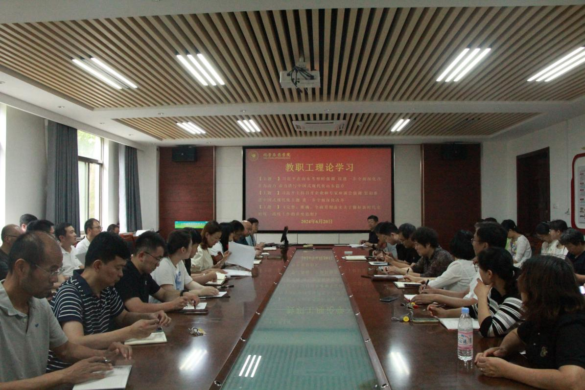会上,王进国带领全体教职工集体学习了习近平总书记在山东考察时作出的重要讲话。讲话中强调山东要在全国发展大局中定好位、挑大梁,要聚焦推进中国现代化,在解决制约高质量发展的矛盾上下功夫,在完善制度、健全机制、激发活力、增添动力上用实劲,以进一步全面深化改革为动力,奋力谱写中国式现代化山东篇章。