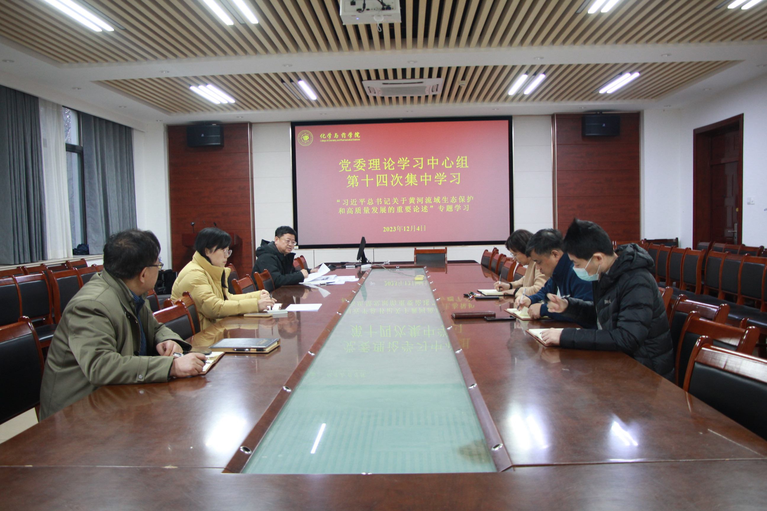 12月4日,太阳成集团tyc122ccvip党委理论学习中心组在化学楼207会议室举行第十四次集体学习。学院党委书记王进国主持,全体中心组成员参加。