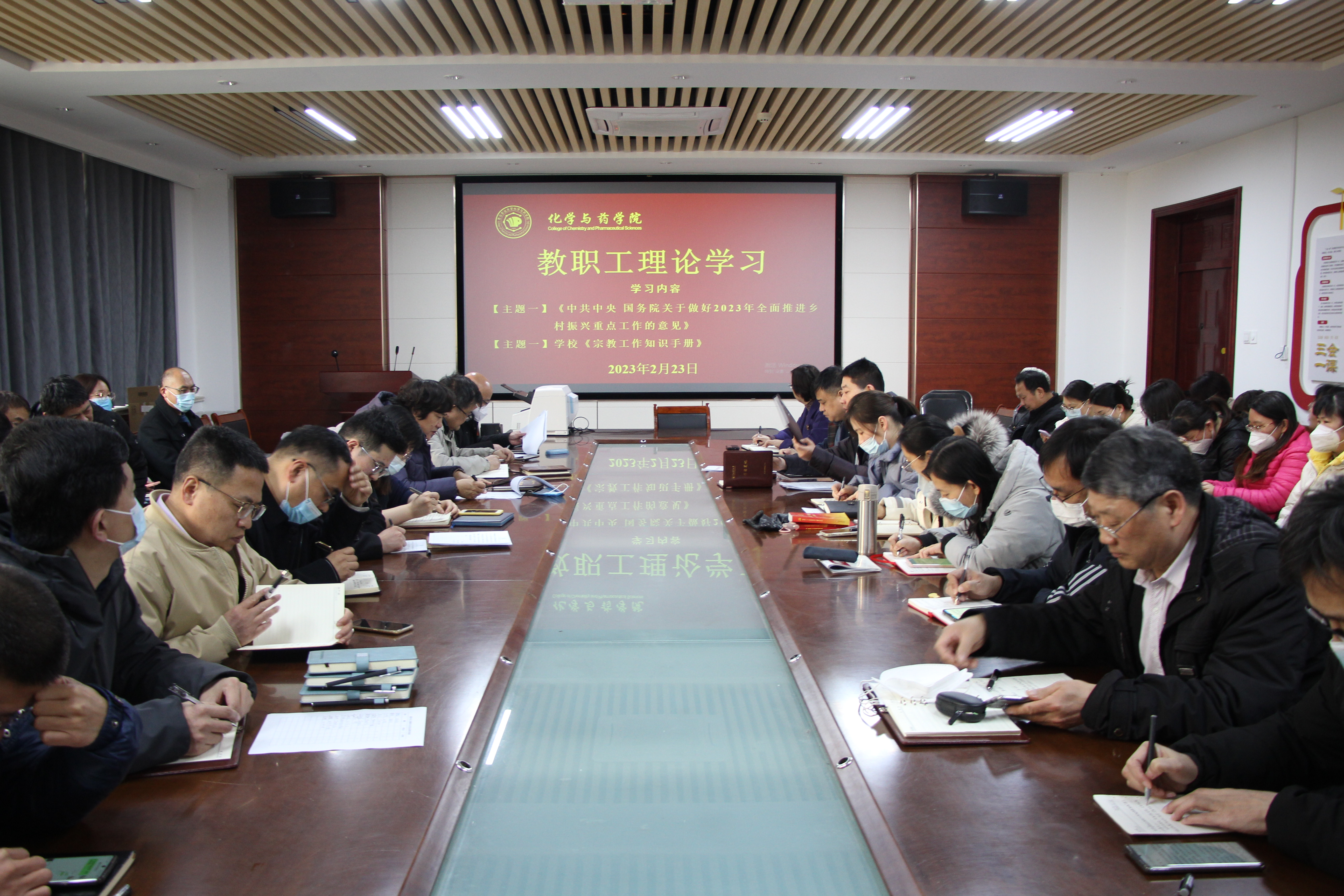 2月23日,太阳成集团tyc122ccvip全体教职工于化学楼会议室开展教职工理论学习,会议由党委副书记张友民主持,全体教职工参加。