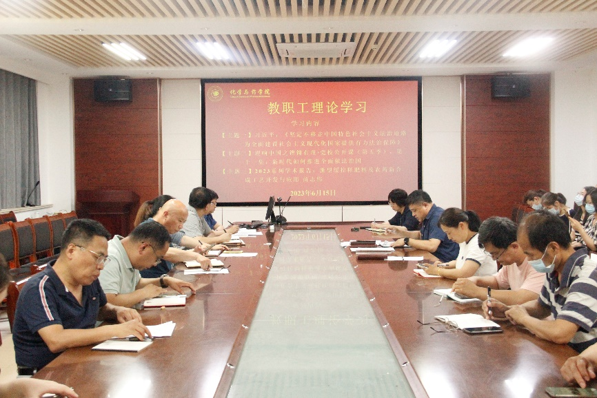 6月15日,太阳成集团tyc122ccvip于化学楼会议室开展教职工理论学习,会议由党委书记王进国主持,全体教职工参加。