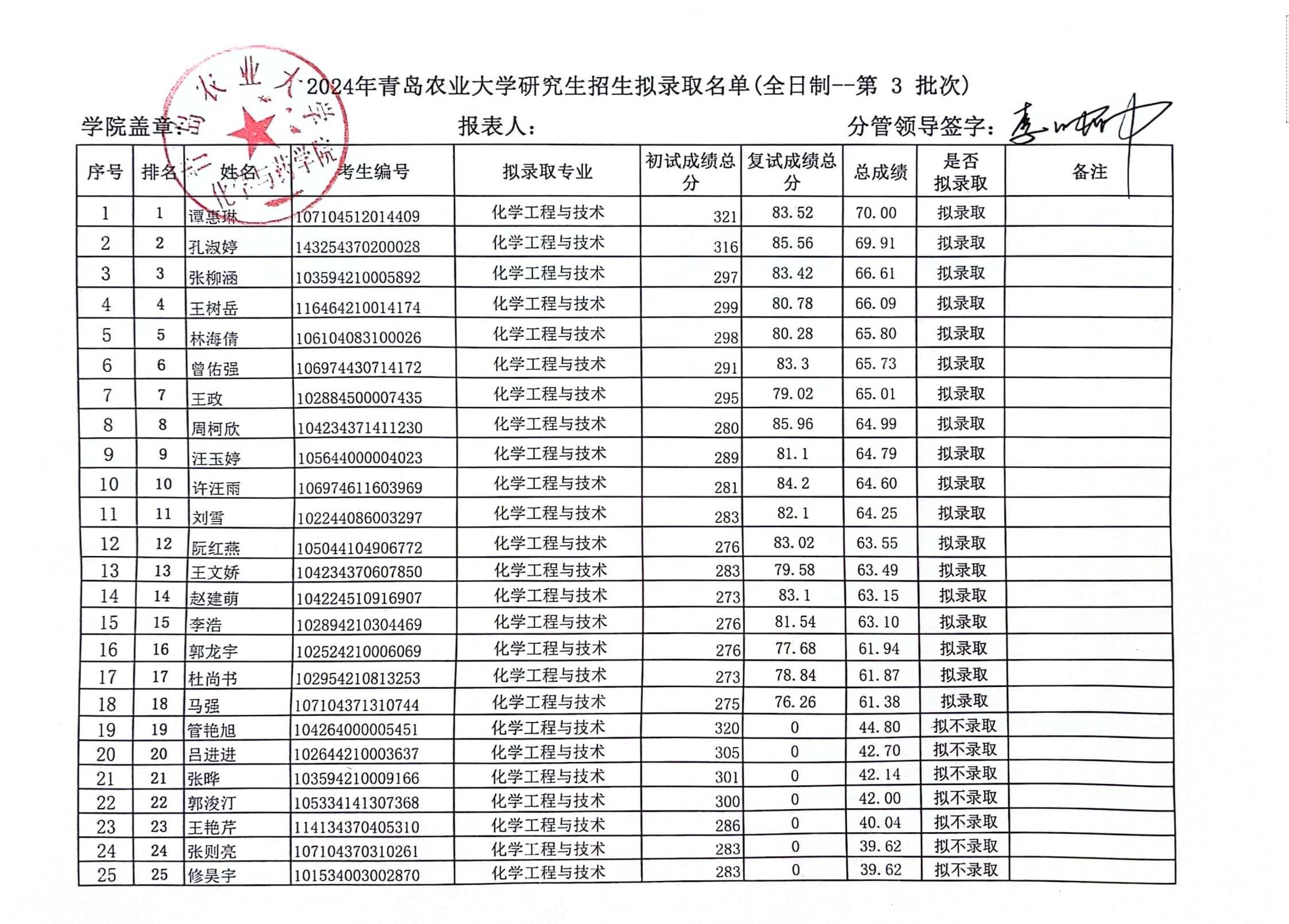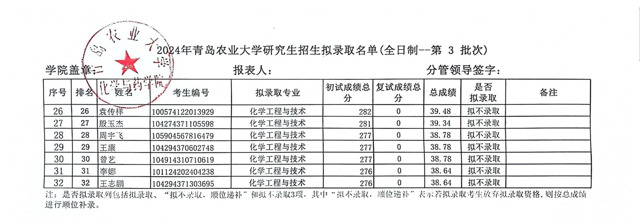 太阳成集团tyc122ccvip2024年硕士研究生拟录取名单--第三批次