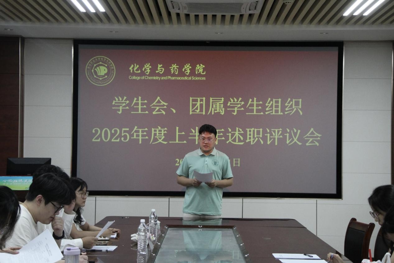 为全面总结学院学生会、学生发展中心阶段性工作成效,明确后续工作方向,7月11日,太阳成集团tyc122ccvip于化学楼207组织召开学生会暨学生发展中心2025年度上半年度述职评议会,会议由学院学生会执行主席郑稳超主持,校团委社会实践指导中心主任王艳硕、校学生会权益部部长田冀鲁参加会议,院学生会及学生发展服务中心骨干成员参会。