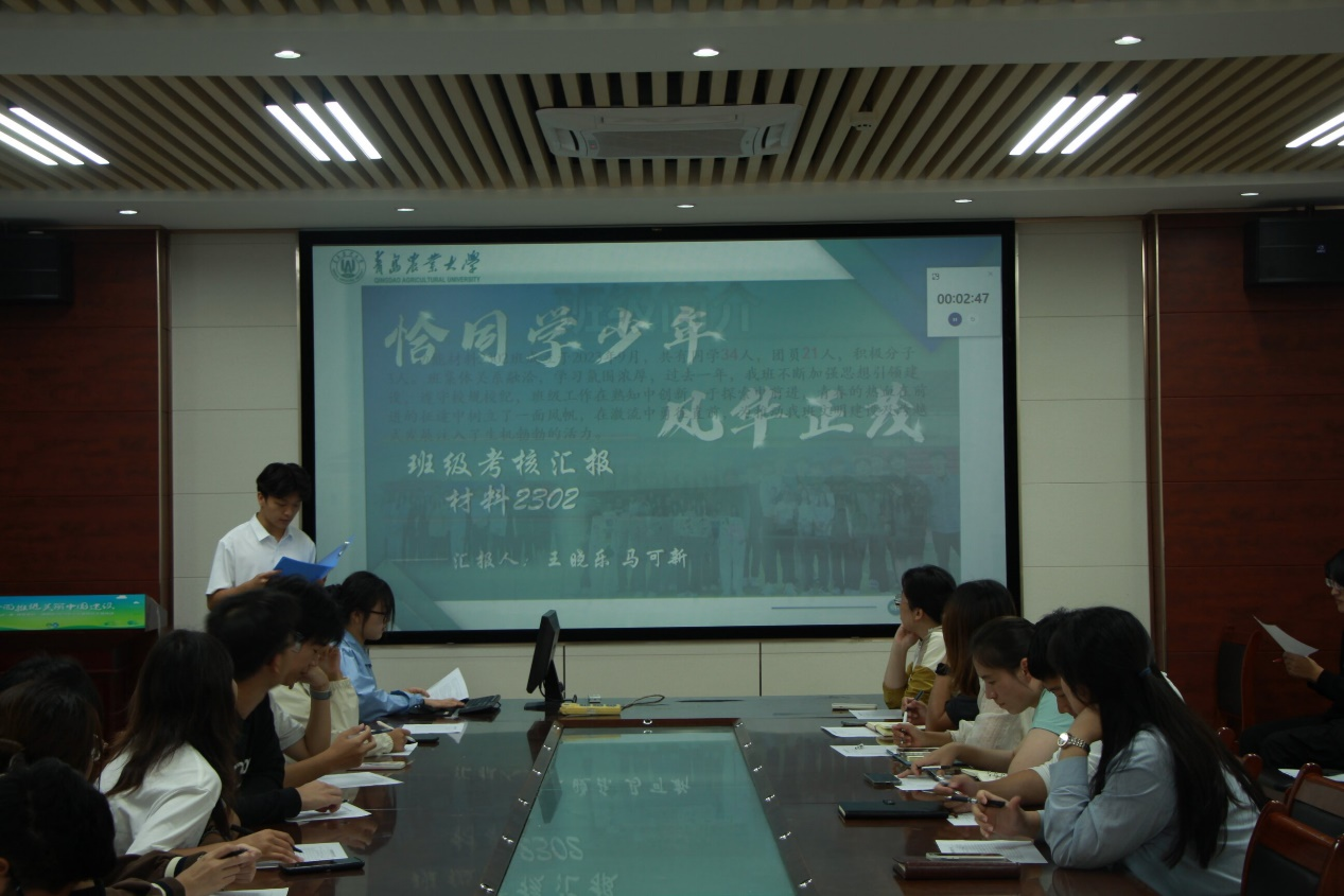 会议伊始,由各班级代表轮流通过PPT对本班在2023-2024学年度班级工作进行汇报,汇报内容包括学习成绩、学风建设、班级活动、社会实践等方面。详细展示了班级各项工作的开展情况,也展现了积极进取、团结友爱的班级风貌。各位评委认真听取了各班级的汇报,遵循公平、公正、公开的原则,依据量化考核标准以及各班级综合表现进行打分。