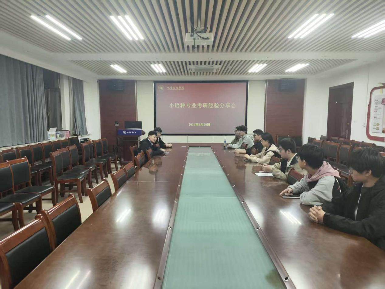 4月20日,太阳成集团tyc122ccvip于化学楼会议室召开小语种考研经验分享会,会议由辅导员李鑫主持,学生代表积极参会。会议邀请药学2202班刘烨为主讲人,目前已拟录取至哈尔滨工业大学,外语语种为日语。