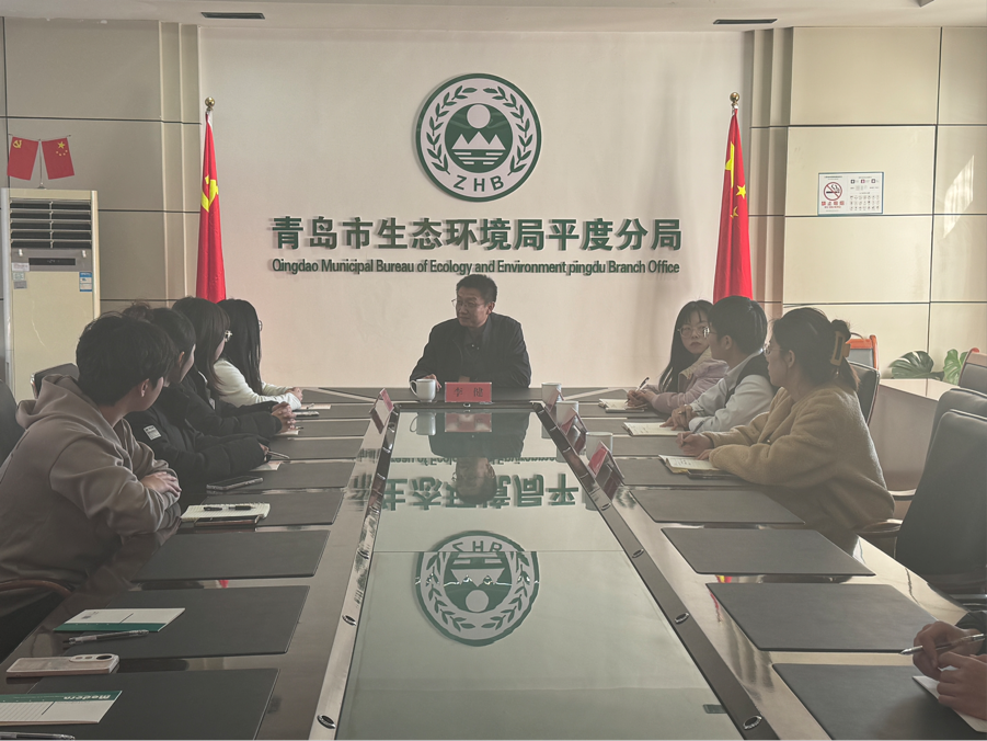 图为实践团成员在青岛市生态环境局平度分局会议室座谈交流 丰荣杰 摄